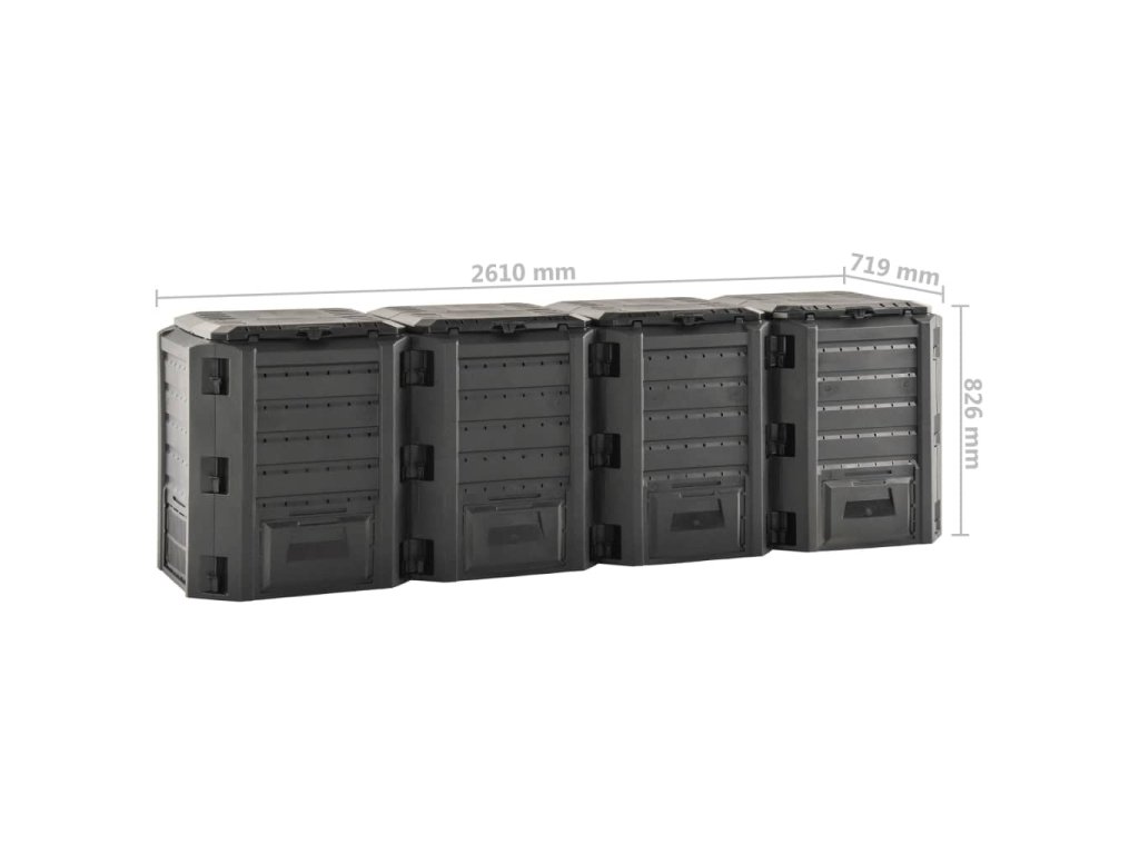 Vysoký vývoj tepla vo vnútri kompostovacej jednotky podporuje rýchlejší rozklad baktérií a vytvára lepší humus. Vďaka kompaktnému dizajnu zaberá iba málo miesta, ale môže sa pochváliť veľkým objemom. Veko na vrchnej časti uľahčuje plnenie zhora. Klapka zase zaisťuje jednoduché odstránenie humusu. Tento kompostér sa dá zostaviť bez dodatočného náradia.