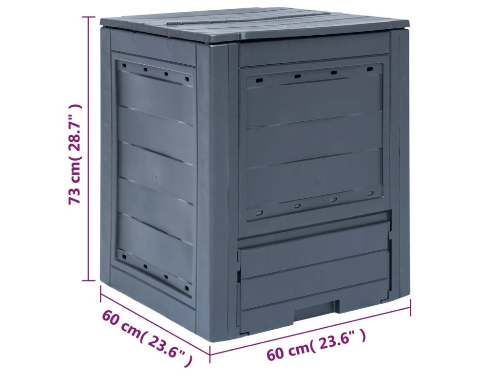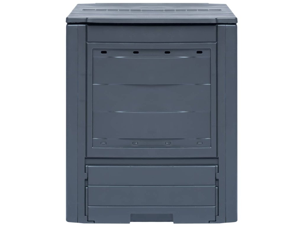 Kompostová nádoba je vyrobená z plastu, vďaka čomu je odolná voči UV žiareniu a poveternostným vplyvom. Kompostér má ľahké telo a elegantný vzhľad. Má rozdelené veko pre optimálne zavlažovanie a ventiláciu. Vďaka vetracím otvorom v bočnej časti dosiahnete optimálne kompostovanie. Tento štvorcový kompostér bude veľmi užitočný pri recyklácii, a bude sa prirodzene hodiť do akejkoľvek záhrady.