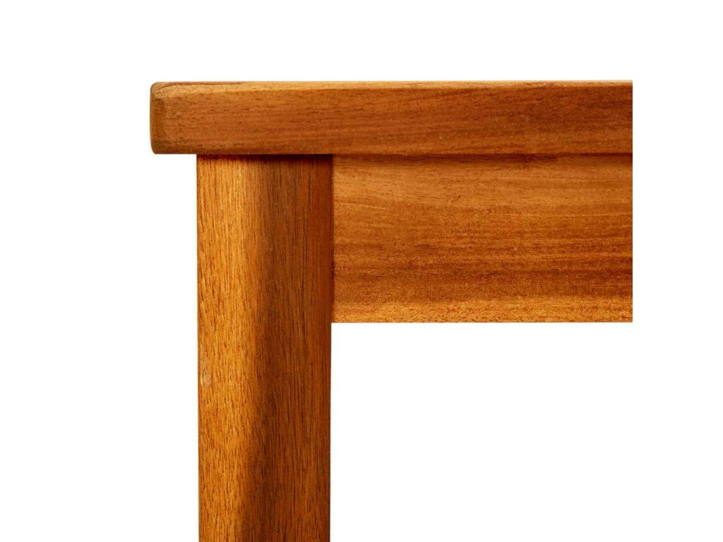 Tento stôl je vyrobený z akáciového masívu s povrchovou úpravou prírodným olejom, je odolný voči poveternostným vplyvom a trvácny. Každý krok výrobného procesu sa vykonáva s najväčšou starostlivosťou, či už ide o leštenie alebo lakovanie. Pevná stolová doska s roštovým dizajnom vám ponúka priestor na umiestnenie občerstvenia, ovocných košov, ozdobných predmetov a ďalších potrieb.