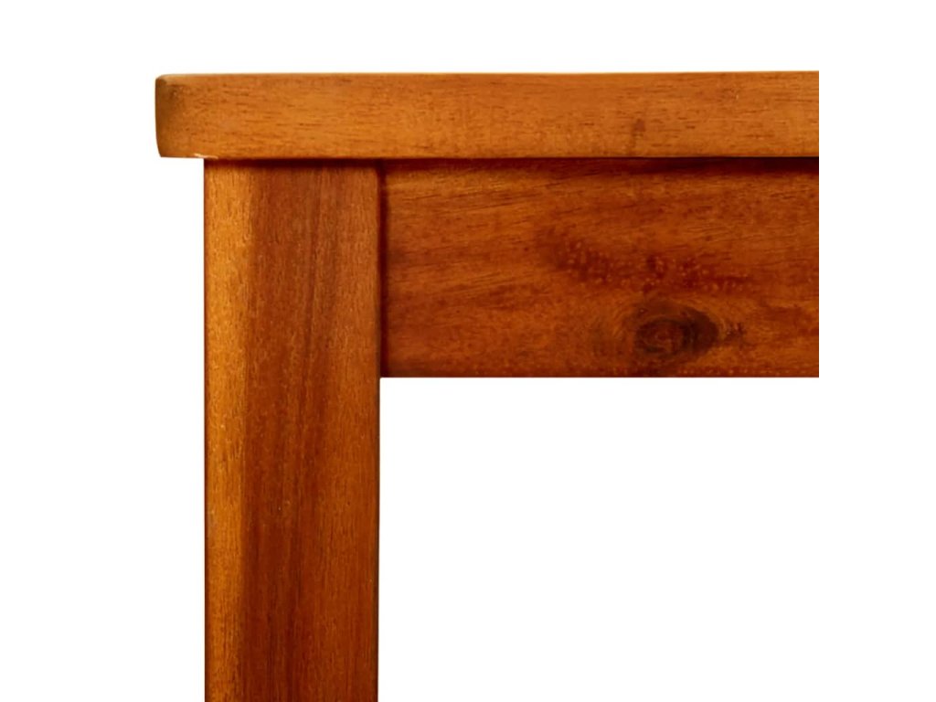 Tento stôl je vyrobený z akáciového masívu s povrchovou úpravou prírodným olejom, je odolný voči poveternostným vplyvom a trvácny. Každý krok výrobného procesu sa vykonáva s najväčšou starostlivosťou, či už ide o leštenie alebo lakovanie. Pevná stolová doska s roštovým dizajnom vám ponúka priestor na umiestnenie občerstvenia, ovocných košov, ozdobných predmetov a ďalších potrieb.