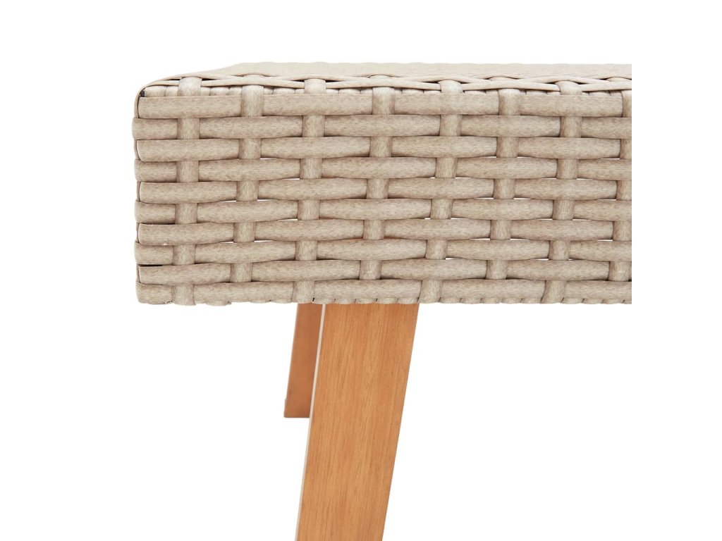 - Materiál: PE ratan, oceľ s práškovou povrchovou úpravou, eukalyptus s povrchovou úpravou v podobe teakového dreva