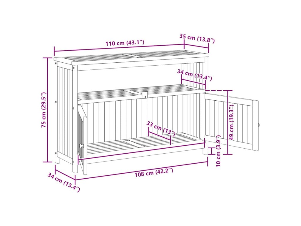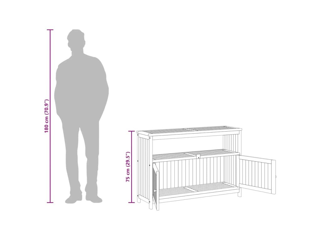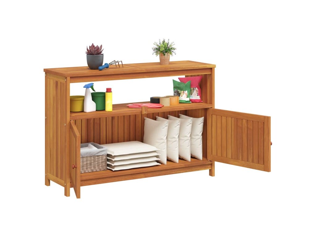 - Praktické dvierka: Chráňte svoje veci pred prachom tým, že ich schováte za dvierka tohto záhradného stolíka.