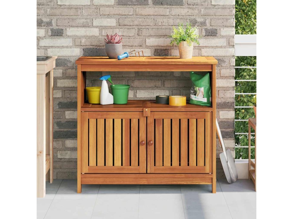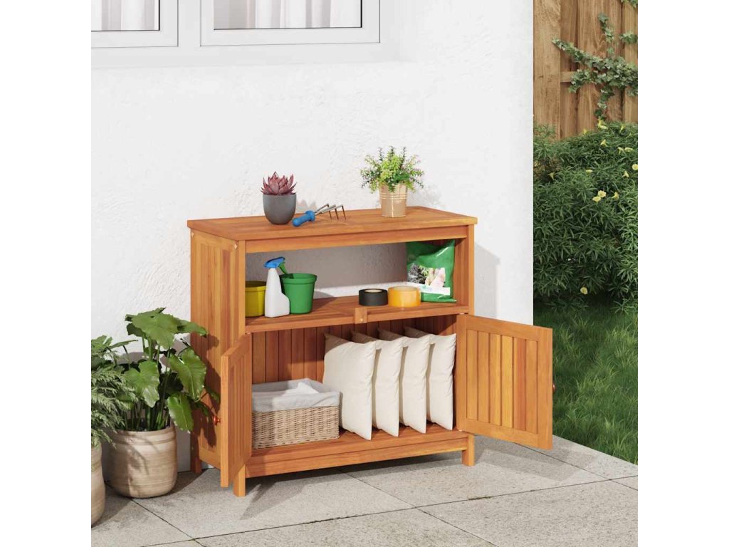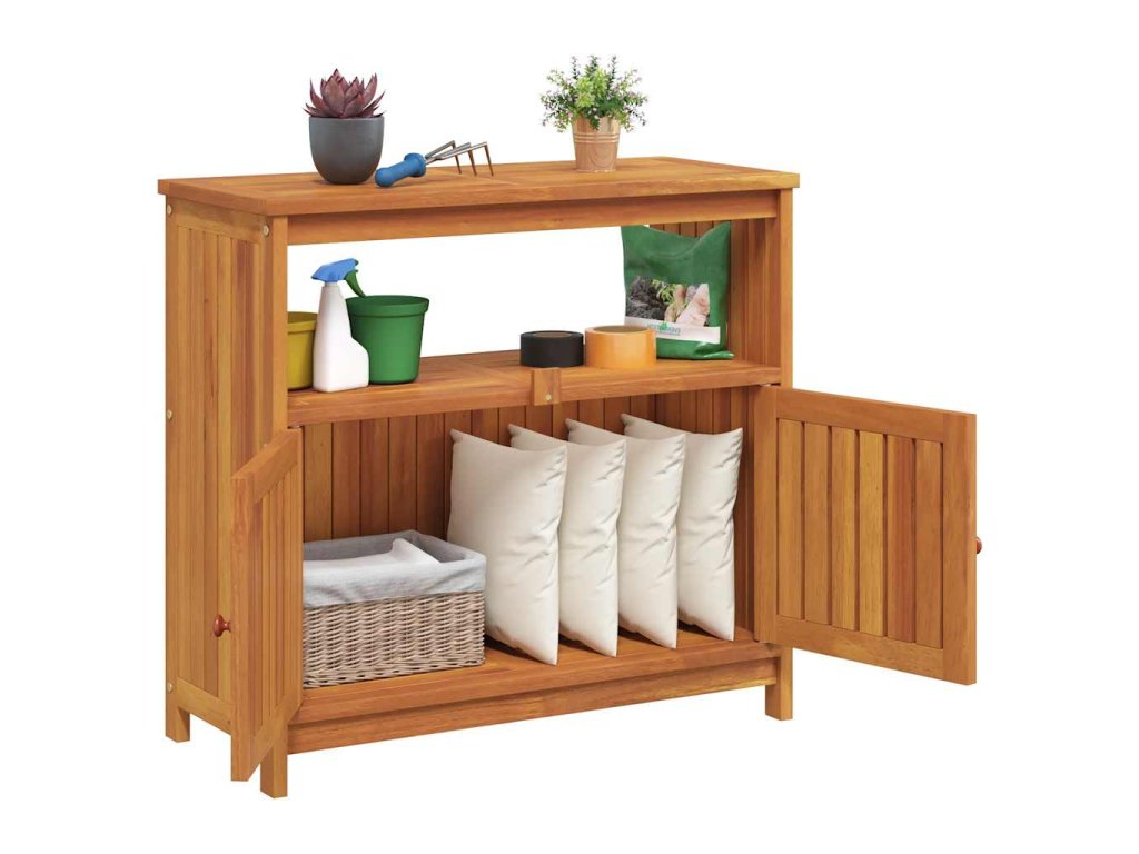 - Praktické dvierka: Chráňte svoje veci pred prachom tým, že ich schováte za dvierka tohto záhradného stolíka.