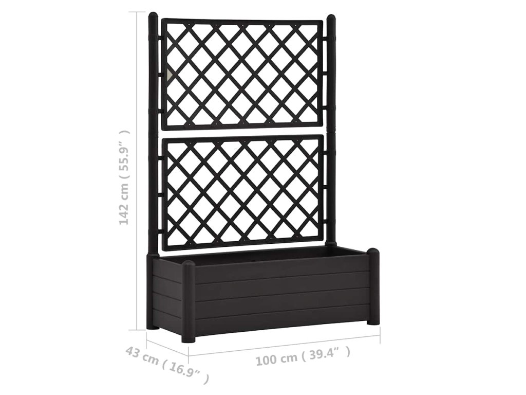 Vyvýšený záhon je vyrobený z PP odolného voči poveternostným vplyvom a je ľahký a vhodný na vonkajšie použitie. Má veľký kvetinový box s objemom 90 l, do ktorého sa zmestí značné množstvo zelených rastlín a kvetov. Integrovaná mriežka ponúka veľkú podporu popínavým rastlinám a tiež vytvorí pôsobivý a dekoratívny efekt, keď bude pokrytá krásnymi popínavými rastlinami.