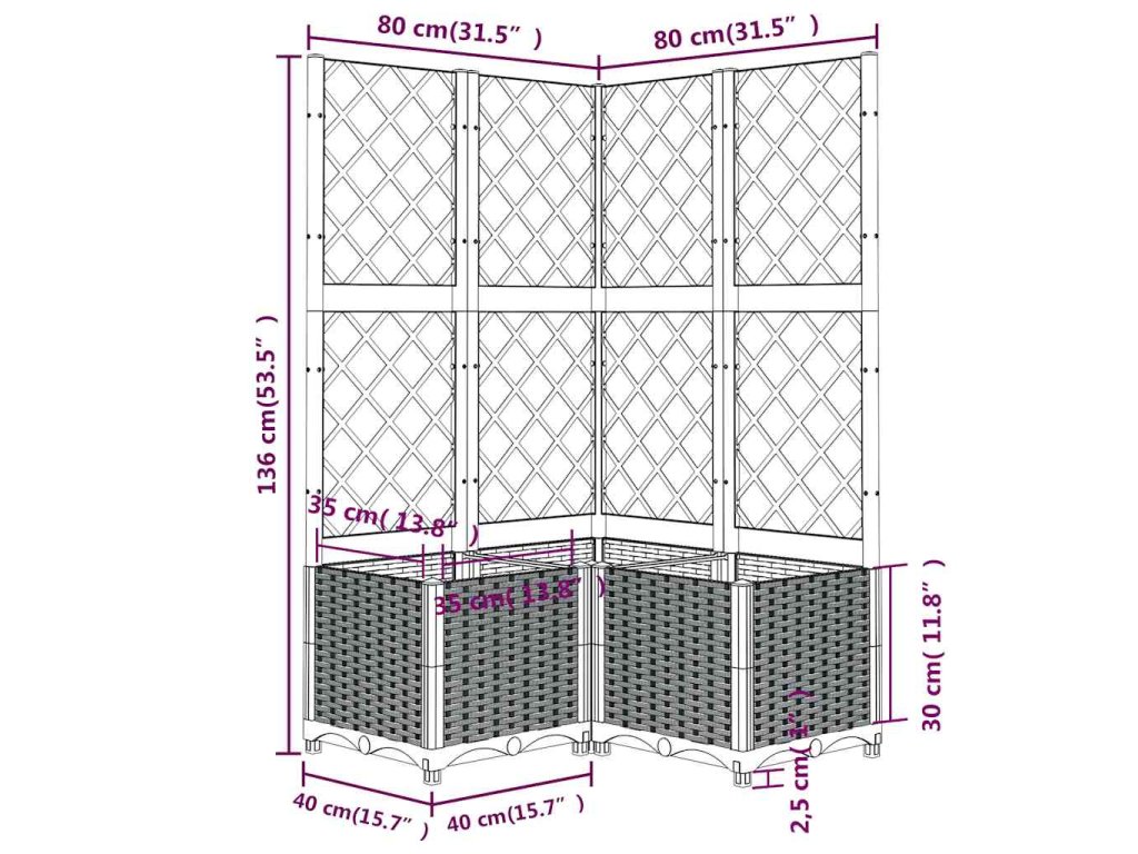 Tento kvetináč je vyrobený z PP odolného voči poveternostným vplyvom, je pevný a vhodný na vonkajšie použitie. Do spodného boxu sa zmestí veľké množstvo zelených rastlín a kvetov. Integrovaná mriežka ponúka skvelú podporu pre pestovanie popínavých rastlín, ako sú paradajky, hrach a ruže.