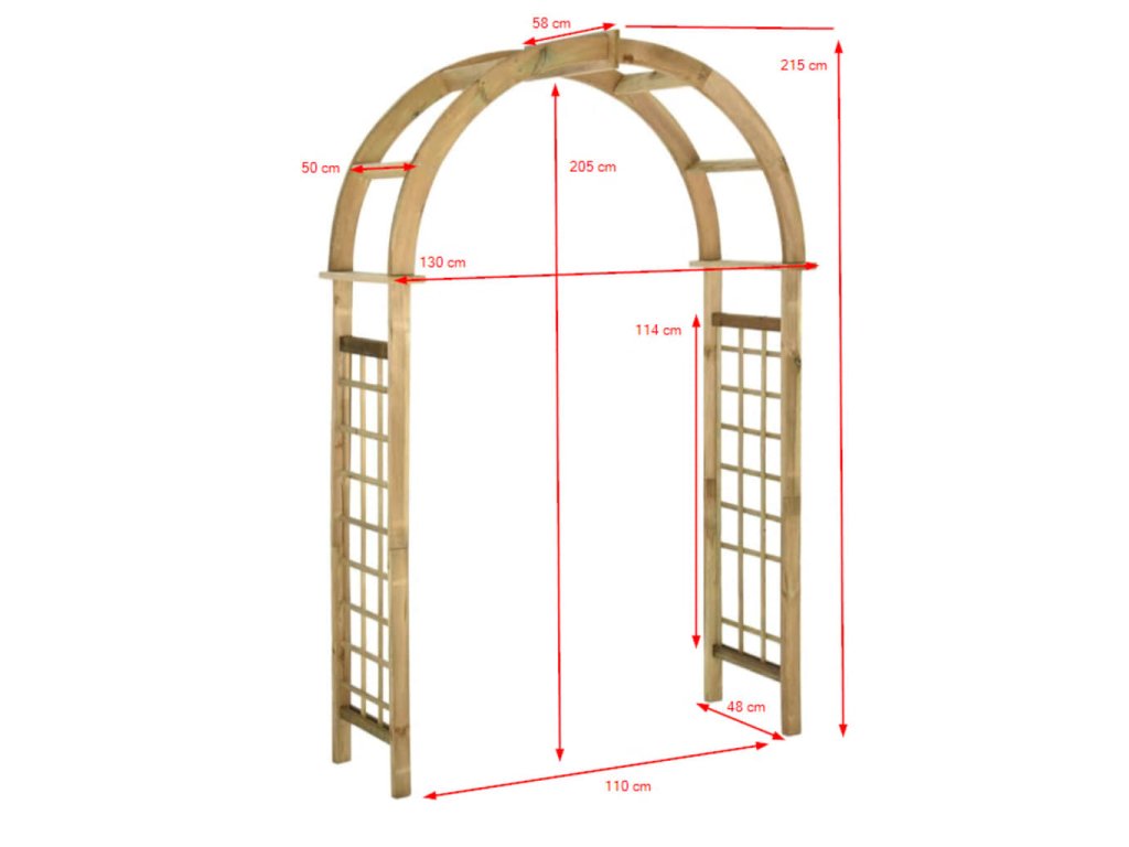 - Masívne borovicové drevo: Pevný oblúk na ruže je vyrobený z borovicového dreva so zelenou impregnáciou, takže je trvácny a odolný voči hnilobe.