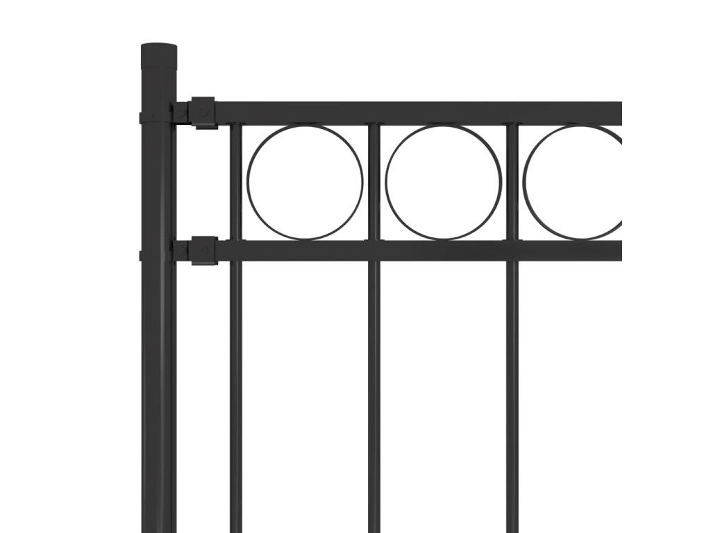 Záhradné oplotenie s elegantnými ozdobnými krúžkami vo vrchnej časti a pevnými vodorovnými stĺpikmi na spevnenie rámu poskytuje optimálnu bezpečnosť a súkromie. Vonkajší plot, ktorý je vyrobený z odolnej ocele s práškovou povrchovou úpravou, je okrem toho skutočne pevný, stabilný, robustný a trvácny.