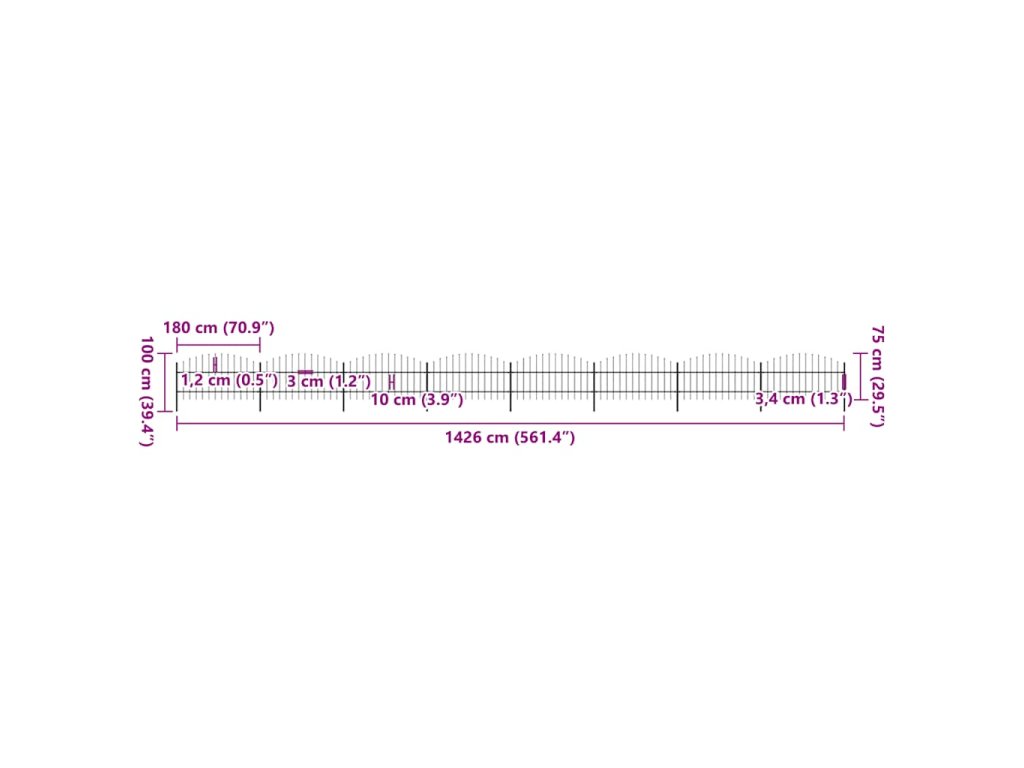 Vytvorte si okolo svojho pozemku bezpečné oplotenie s našim prvotriednym záhradným plotom! Vysokokvalitný oceľový záhradný plot pozostáva z 8 plotových panelov a 9 stĺpikov a má celkovú dĺžku 13,6 metra. Umožní vám postaviť si robustnú a bezpečnú bariéru, ktorá si nevyžaduje žiadnu údržbu a ktorá ohraničí vašu záhradu, dom či komerčné priestory.