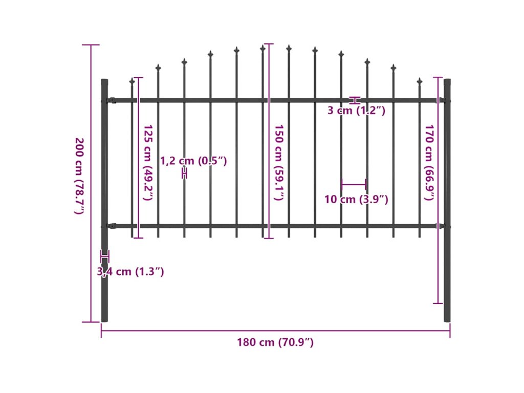 Plot je vyrobený z odolnej ocele, a preto je mimoriadne stabilný, pevný a trvácny. Záhradné oplotenie pozostáva zo zvislých stĺpikov s hrotmi a z pevných vodorovných oporných tyčí, vďaka čomu poskytuje optimálnu bezpečnosť a súkromie. Plotový panel sa jednoducho montuje.
