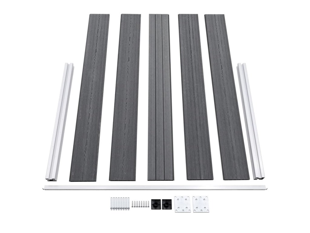 - Materiál: Drevoplastový kompozit + koncová tyč a stĺpiky z hliníka