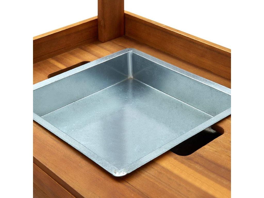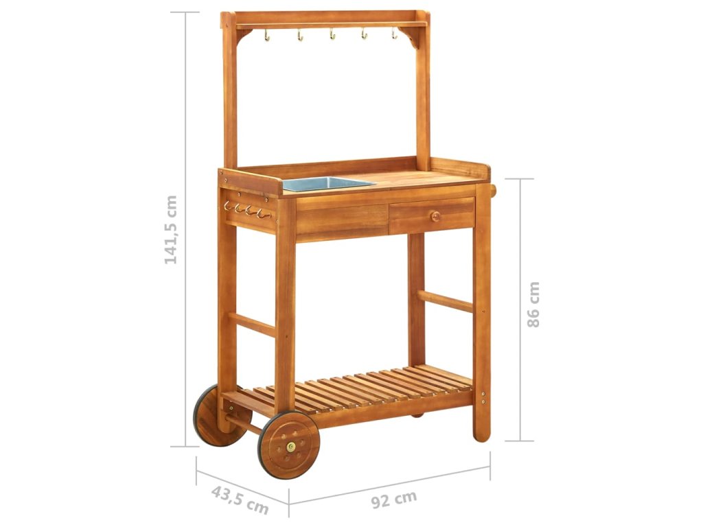 Záhradný kuchynský stôl je vyrobený z masívneho akáciového dreva, tropického tvrdého dreva, ktoré je veľmi trvácne a odolné voči poveternostným vplyvom. Tento drevený servírovací vozík dodá vášmu vonkajšiemu alebo vnútornému priestoru rustikálny nádych.