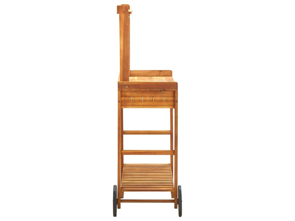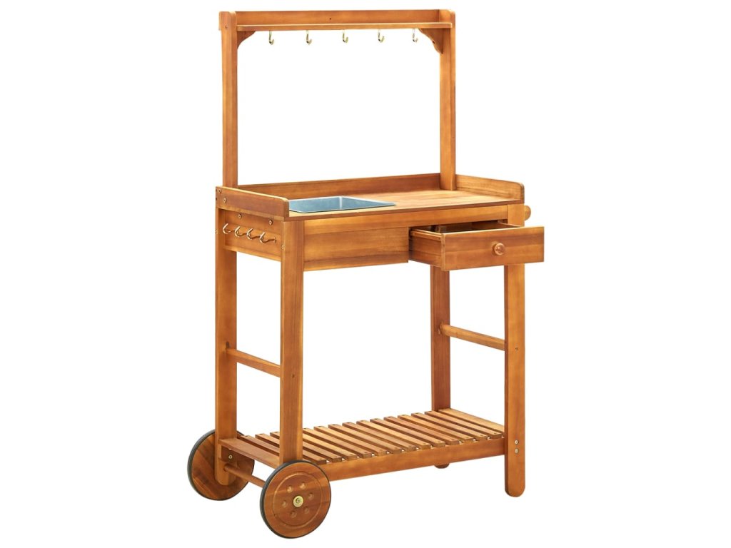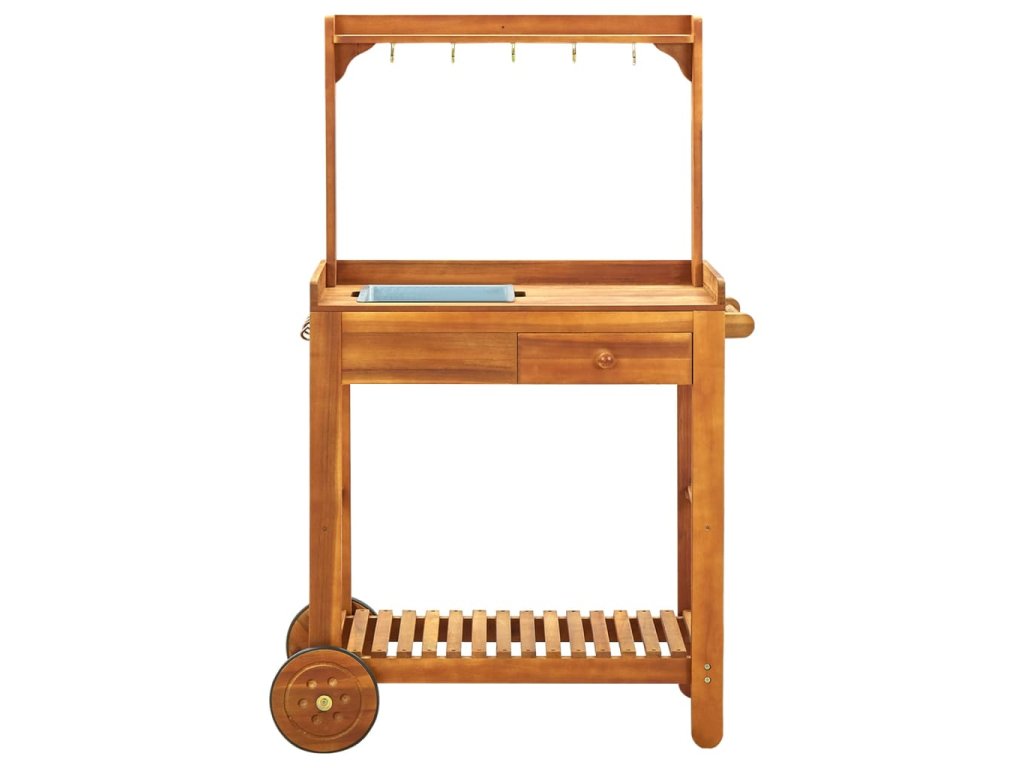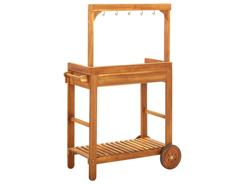 Náš záhradný servírovací vozík z masívneho akáciového dreva vám umožní pripravovať a servírovať jedlo na jeho vrchu. Zároveň je dômyselným skladovacím riešením vďaka zásuvke, poličke a 9 háčikom.