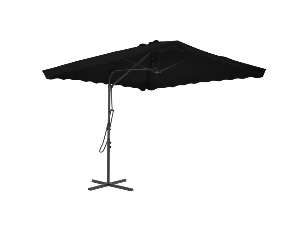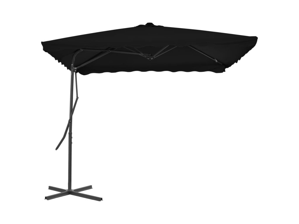 Slnečník je vyrobený z polyesteru, ktorý nevybledne a je odolný voči UV žiareniu, vďaka čomu vám poskytne optimálnu ochranu pred slnkom a ľahko sa čistí. Slnečník má pevný oceľový podstavec v tvare kríža pre lepšiu stabilitu. Pevná oceľová tyč spolu so 4 trvácnymi rebrami zabezpečujú výbornú stabilitu a dlhú životnosť slnečníka. Jedinečný slnečník sa dá otáčať v rozsahu 360 stupňov, a tak si môžete jednoducho nastaviť sklon striešky podľa toho, odkiaľ práve svieti slnko.