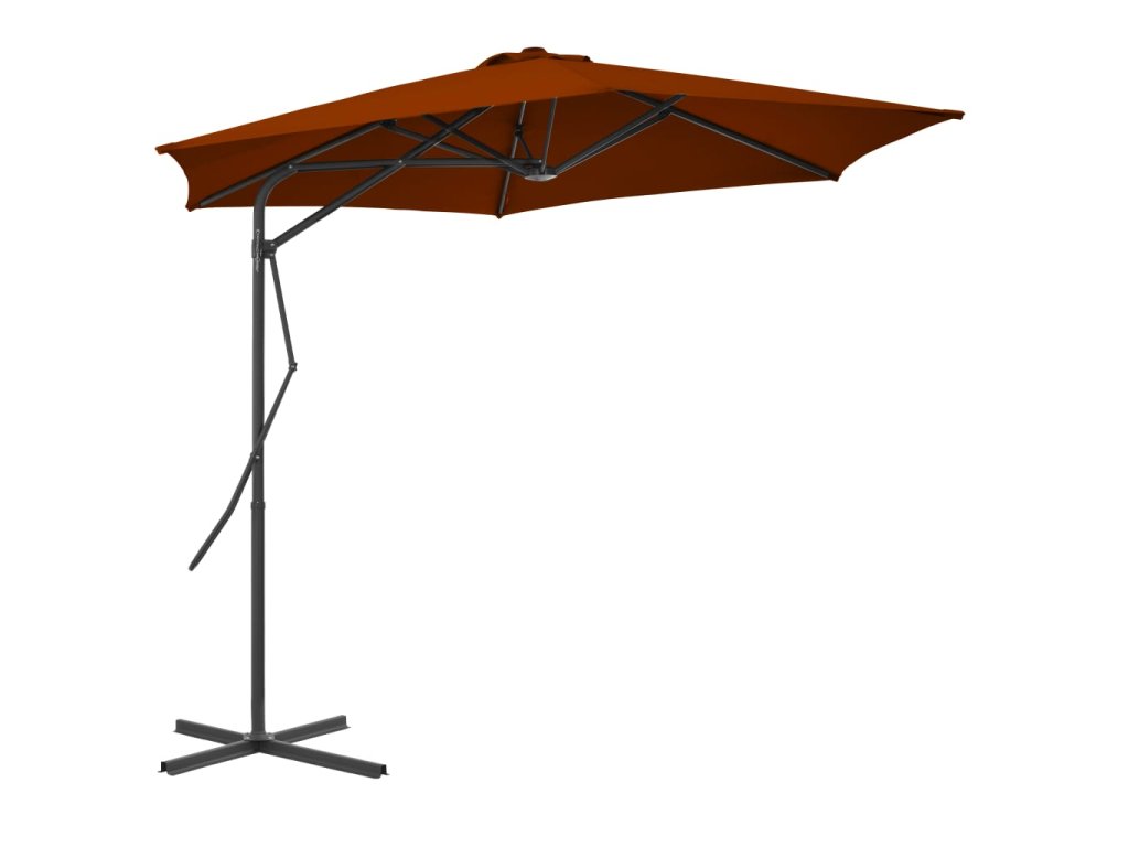 Slnečník je vyrobený z polyesteru, ktorý nevybledne a je odolný voči UV žiareniu, vďaka čomu vám poskytne optimálnu ochranu pred slnkom a ľahko sa čistí. Slnečník má pevný oceľový podstavec v tvare kríža pre lepšiu stabilitu. Pevná oceľová tyč spolu so 6 trvácnymi rebrami zabezpečujú výbornú stabilitu a dlhú životnosť slnečníka. Jedinečný slnečník sa dá otáčať v rozsahu 360 stupňov, a tak si môžete jednoducho nastaviť sklon striešky podľa toho, odkiaľ práve svieti slnko.
