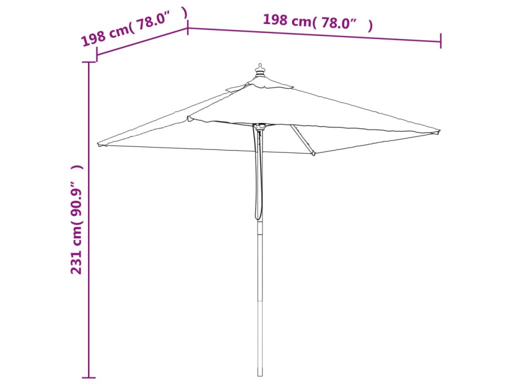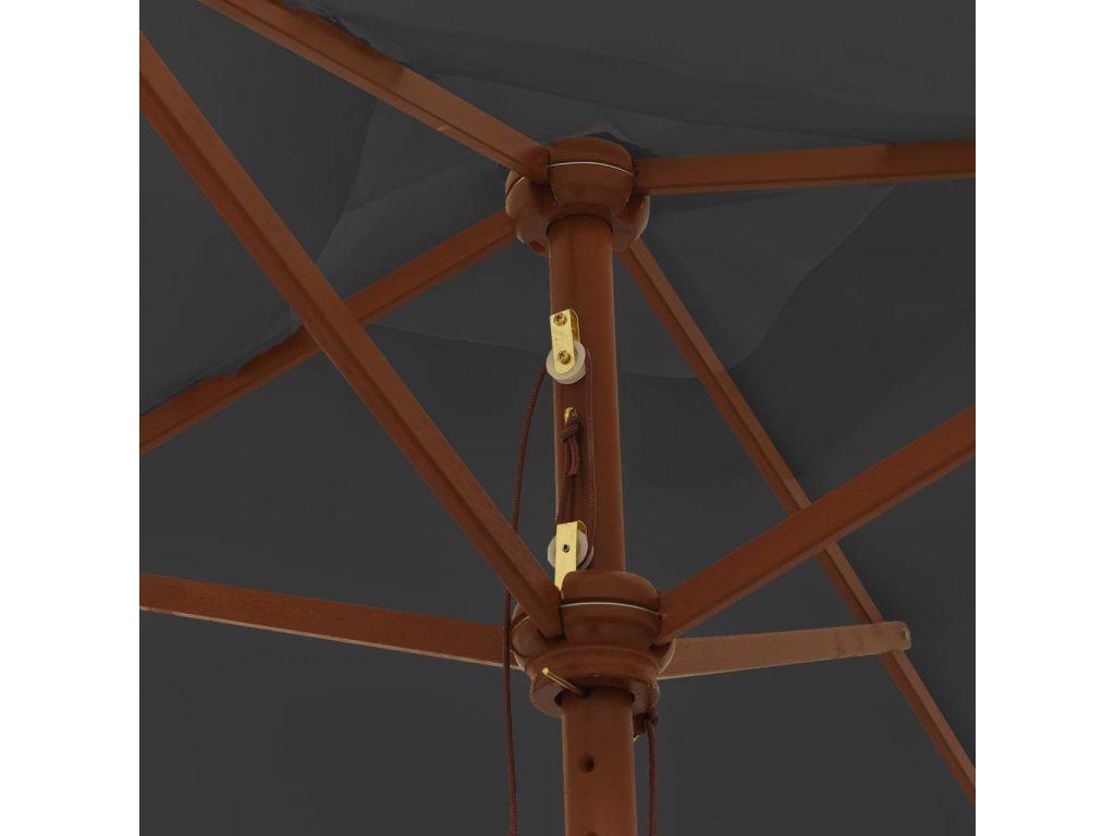 - Stabilný rám: Vďaka pevnej tyči z tvrdého dreva s odolnými rebrami je záhradný slnečník veľmi stabilný a odolný.