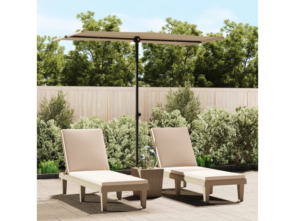 Slnečník je vyrobený z polyesteru, ktorý nevybledne a je odolný voči UV žiareniu, vďaka čomu vám poskytne optimálnu ochranu pred slnkom a ľahko sa čistí. Pevné hliníkové tyče zabezpečujú výbornú stabilitu a dlhú životnosť slnečníka. Záhradný slnečník sa dá otáčať v rozsahu 180 stupňov, a tak si môžete jednoducho nastaviť sklon striešky podľa toho, odkiaľ práve svieti slnko. Položka sa jednoducho montuje.