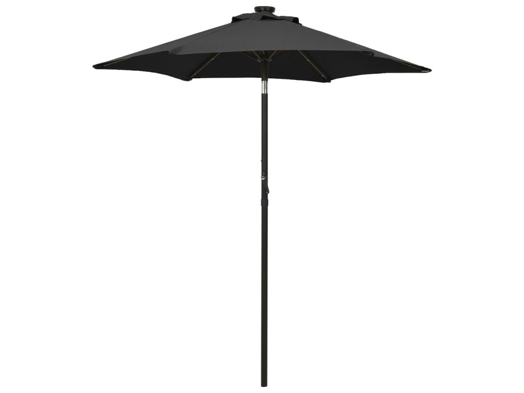 Skladací a prenosný slnečník je vybavený kľukou a sklopným dizajnom. Strecha slnečníka je vyrobená z polyesteru, ktorý je odolný voči UV žiareniu, nebledne a poskytne vám optimálnu ochranu pred slnkom. Pevná hliníková tyč s práškovou povrchovou úpravou spolu so 6 pevnými kovovými rebrami zabezpečí stabilitu a zvýšenú trvácnosť slnečníka, aby ste ho mohli využívať celé roky. Tento terasový slnečník je navyše vybavený 12 LED diódami, ktoré osvetlia váš vonkajší obytný priestor a vytvoria útulné a romantické prostredie pri západe slnka.