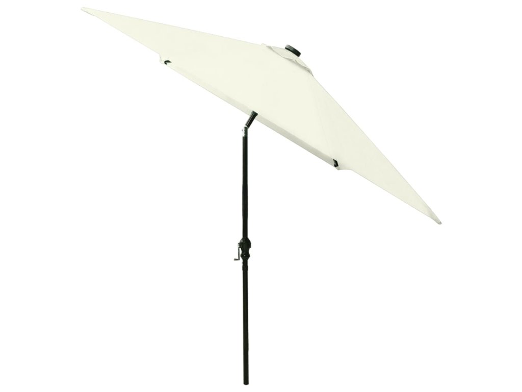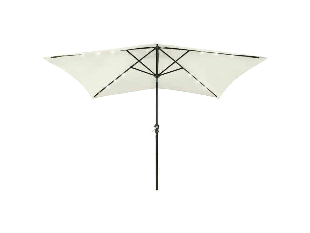 Vonkajší slnečník je vyrobený z polyesteru chrániaceho voči UV žiareniu a odolného voči vyblednutiu, a poskytne vám optimálnu ochranu pred slnkom. Stabilitu zaisťuje aj oceľová tyč a rebrá opatrené práškovým nástrekom. Vďaka kľuke a náklonu je skladací a prenosný. Môže byť pripevnený k existujúcemu stojanu alebo do stredu stola, ak je v ňom k dispozícii otvor. Integrované LED svetlá, ktoré sú napájané solárnym panelom, vytvoria v noci útulné a romantické prostredie.