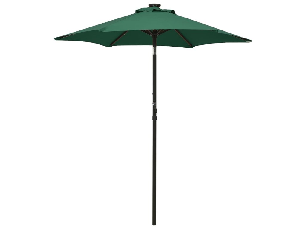 Skladací a prenosný slnečník je vybavený kľukou a sklopným dizajnom. Strecha slnečníka je vyrobená z polyesteru, ktorý je odolný voči UV žiareniu, nebledne a poskytne vám optimálnu ochranu pred slnkom. Pevná hliníková tyč s práškovou povrchovou úpravou spolu so 6 pevnými kovovými rebrami zabezpečí stabilitu a zvýšenú trvácnosť slnečníka, aby ste ho mohli využívať celé roky. Tento terasový slnečník je navyše vybavený 12 LED diódami, ktoré osvetlia váš vonkajší obytný priestor a vytvoria útulné a romantické prostredie pri západe slnka.
