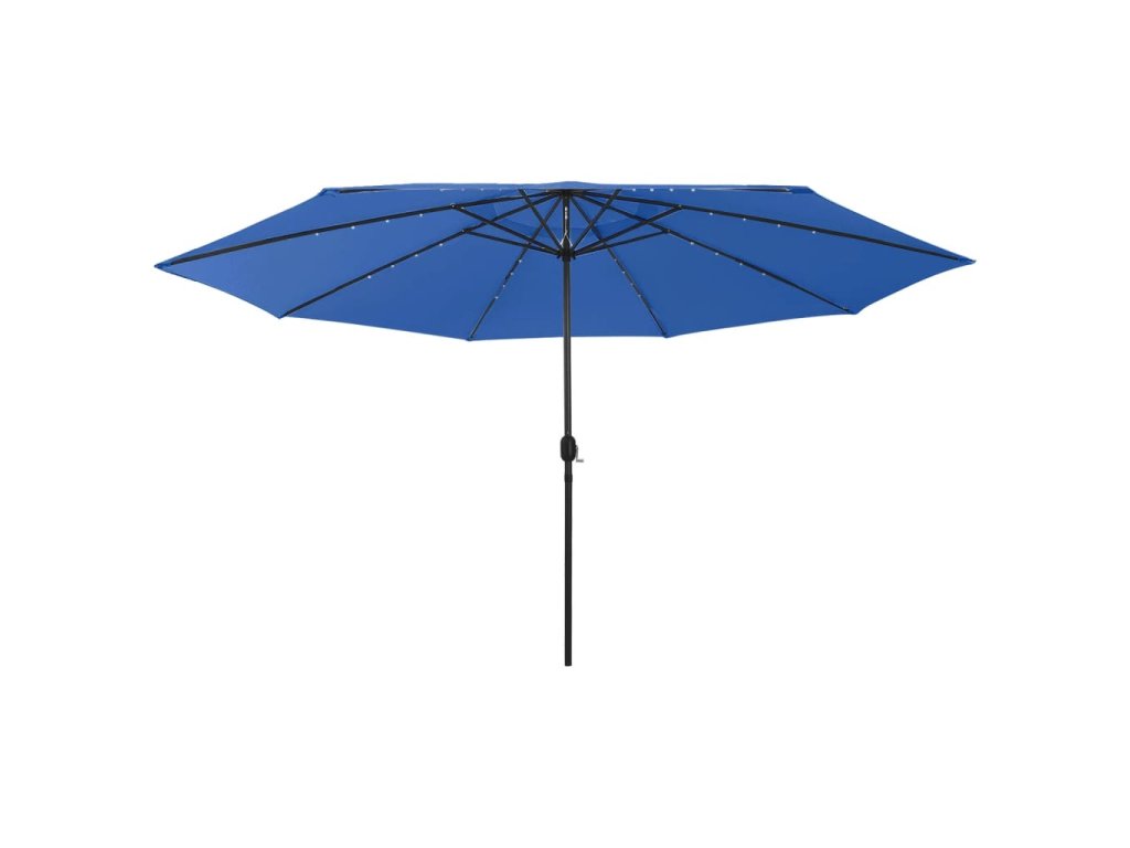 Tento slnečník je vyrobený z polyesteru, ktorý vám poskytuje optimálnu ochranu pred spálením na slnku. Pevná kovová tyč s odolnými rebrami udržuje slnečník stabilný a trvácny. Je vybavený 32 LED diódami, ktoré ho v noci osvetlia a vytvoria útulné a romantické prostredie. Okrem toho sa dá ľahko otvoriť a zavrieť vďaka kľukovému mechanizmu.