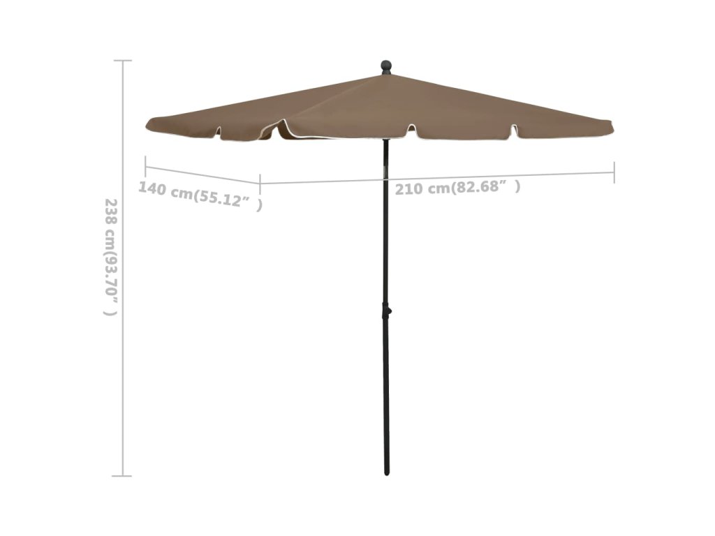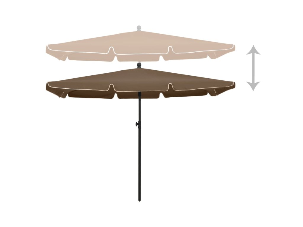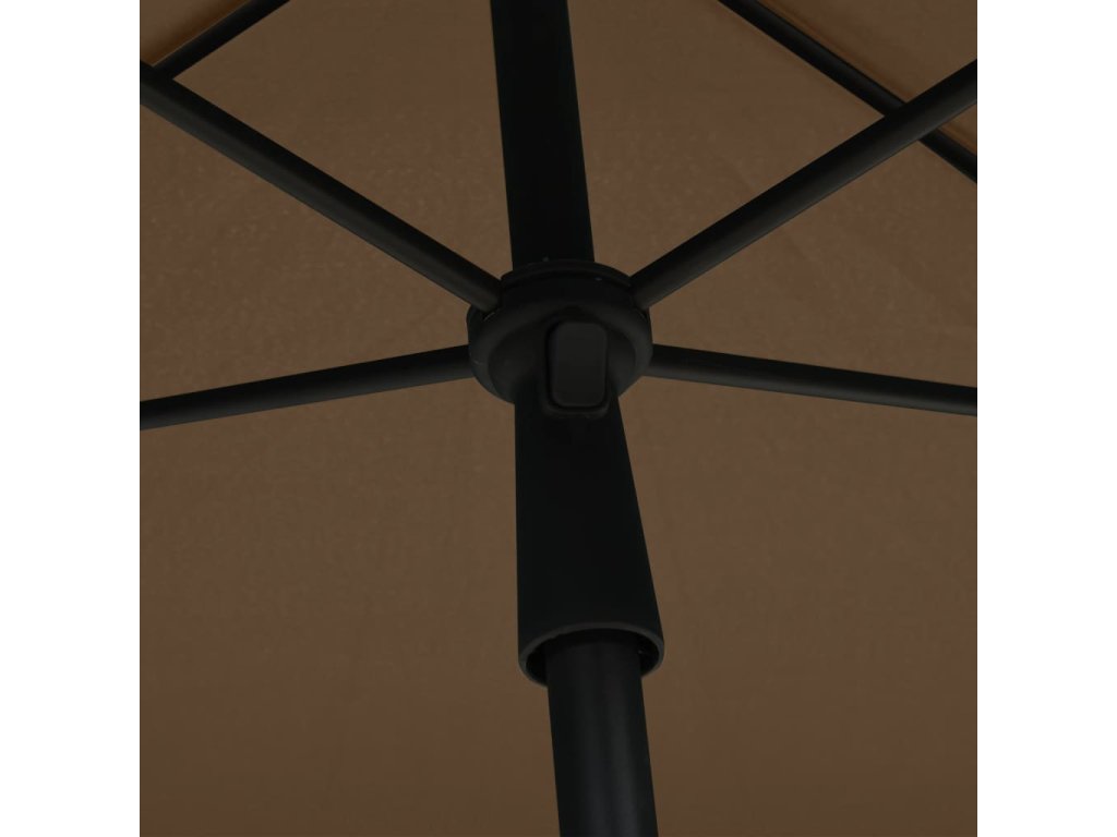 Terasový slnečník je vyrobený z polyesteru odolného voči UV a vyblednutiu. Poskytne vám optimálnu ochranu pred slnkom a ľahko sa čistí. Silná oceľová tyč spolu so 4 pevnými rebrami robí slnečník veľmi stabilným a odolným. Exkluzívny dizajn tohto vonkajšieho slnečníka umožňuje sklopiť slnečník a zablokovať tak slnečné žiarenie.