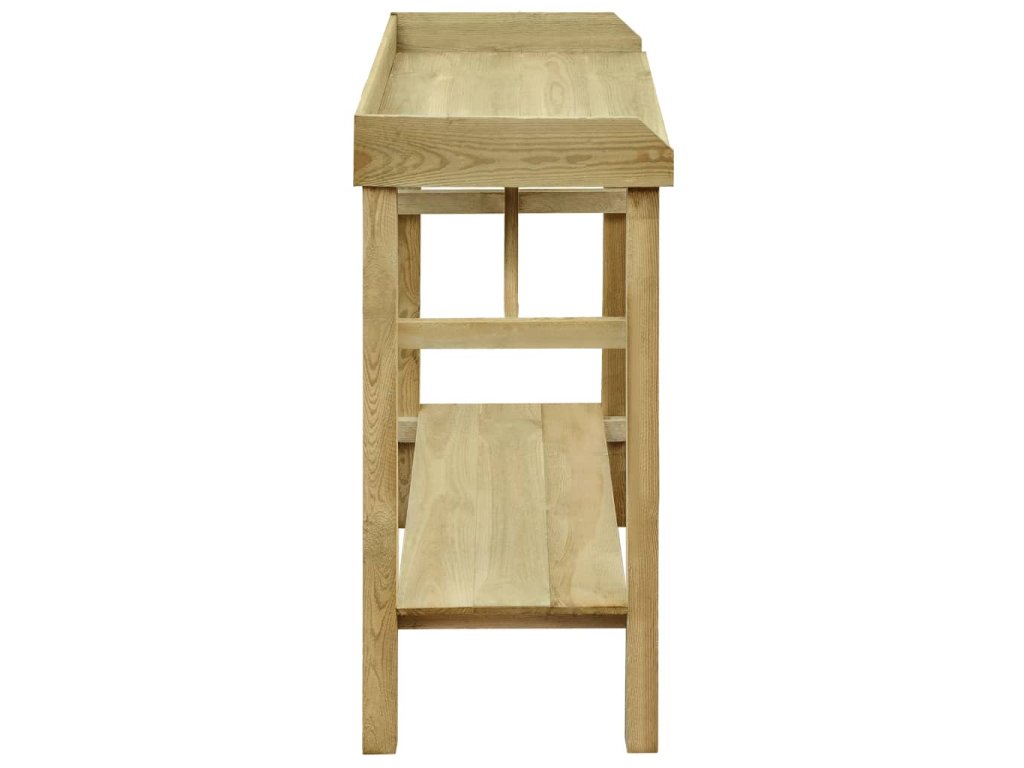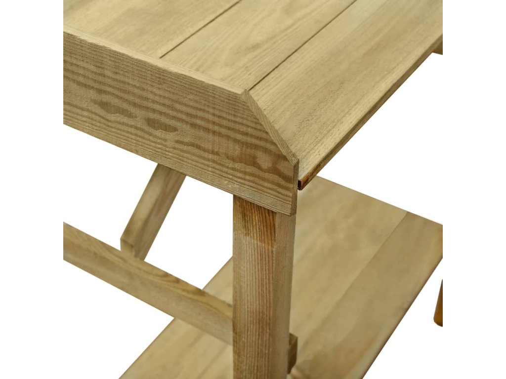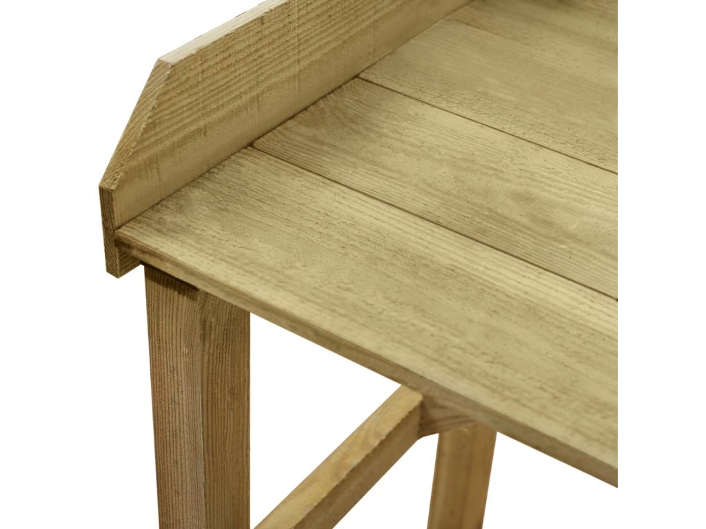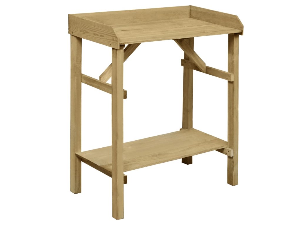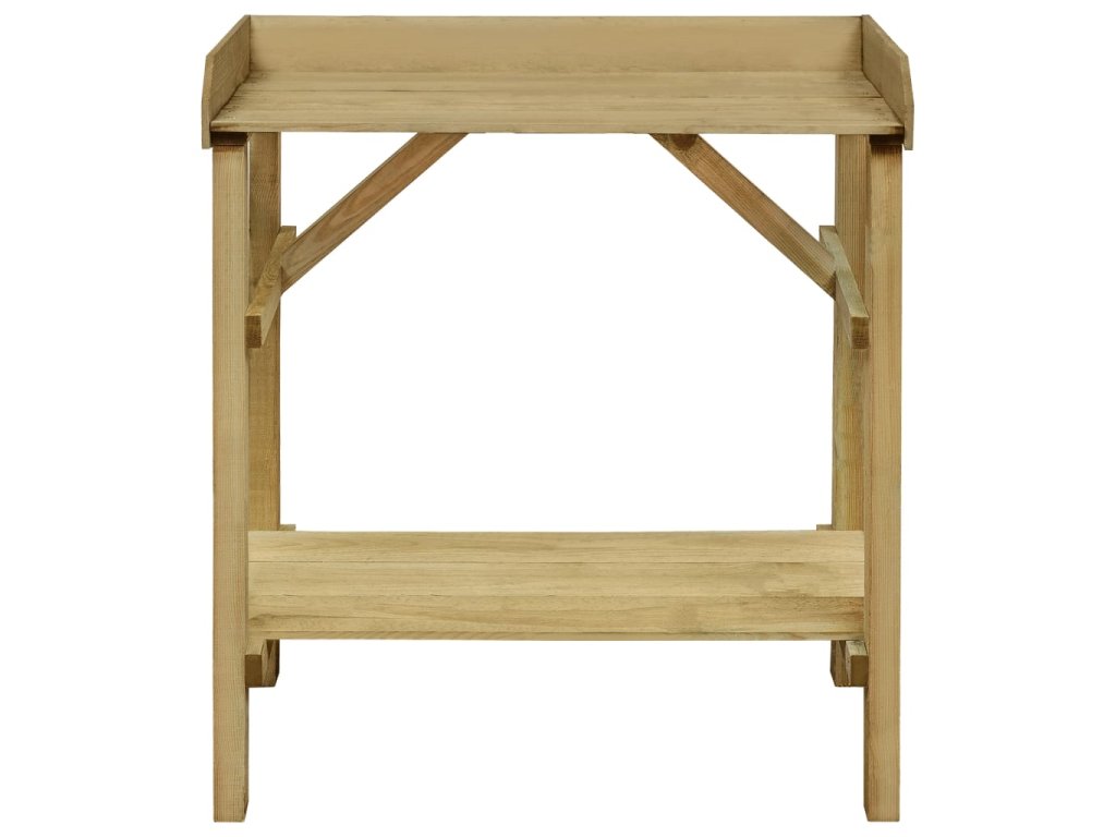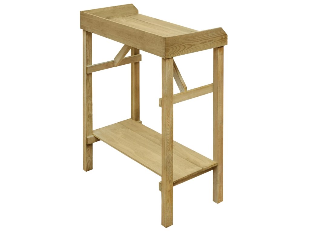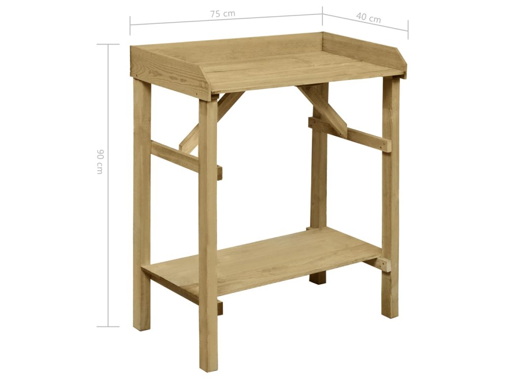 Stolík je vyrobený z vysokokvalitného impregnovaného borovicového dreva, vďaka čomu je pevný, trvácny a odolný voči poveternostným vplyvom. Dizajn s priečnymi latkami dodáva celému rámu potrebnú stabilitu. Výrobok poskytuje veľkú pracovnú plochu a jednu poličku v spodnej časti, kam si môžete vystaviť svoje kvetináče. Montáž je jednoduchá.