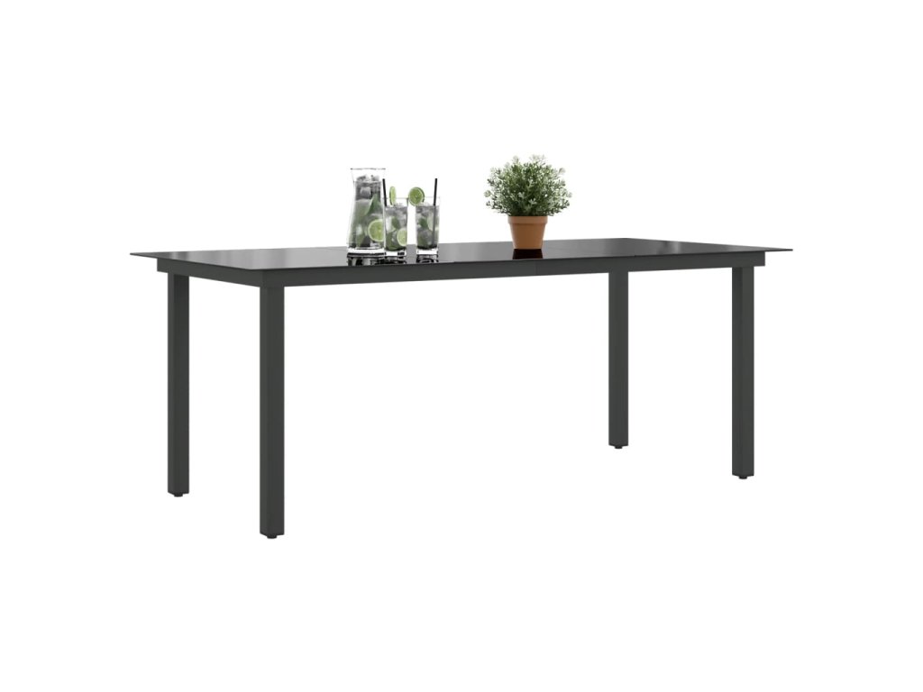 Doska stola je vyrobená zo skla, ktoré je odolné voči poveternostným vplyvom a dá sa ľahko očistiť. Pevný hliníkový rám s práškovou povrchovou úpravou stolu dodáva potrebnú pevnosť a trvácnosť. Montáž je jednoduchá.
