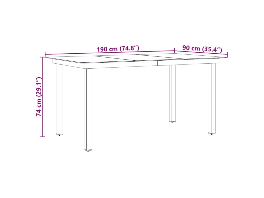 - Rozmery stola: 190 x 90 x 74 cm (D x Š x V)