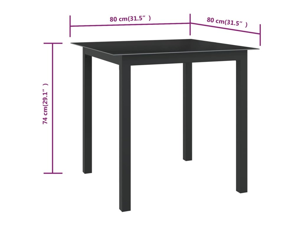 - Rozmery stola: 80 x 80 x 74 cm (D x Š x V)