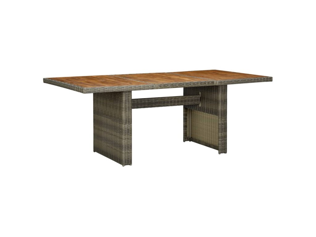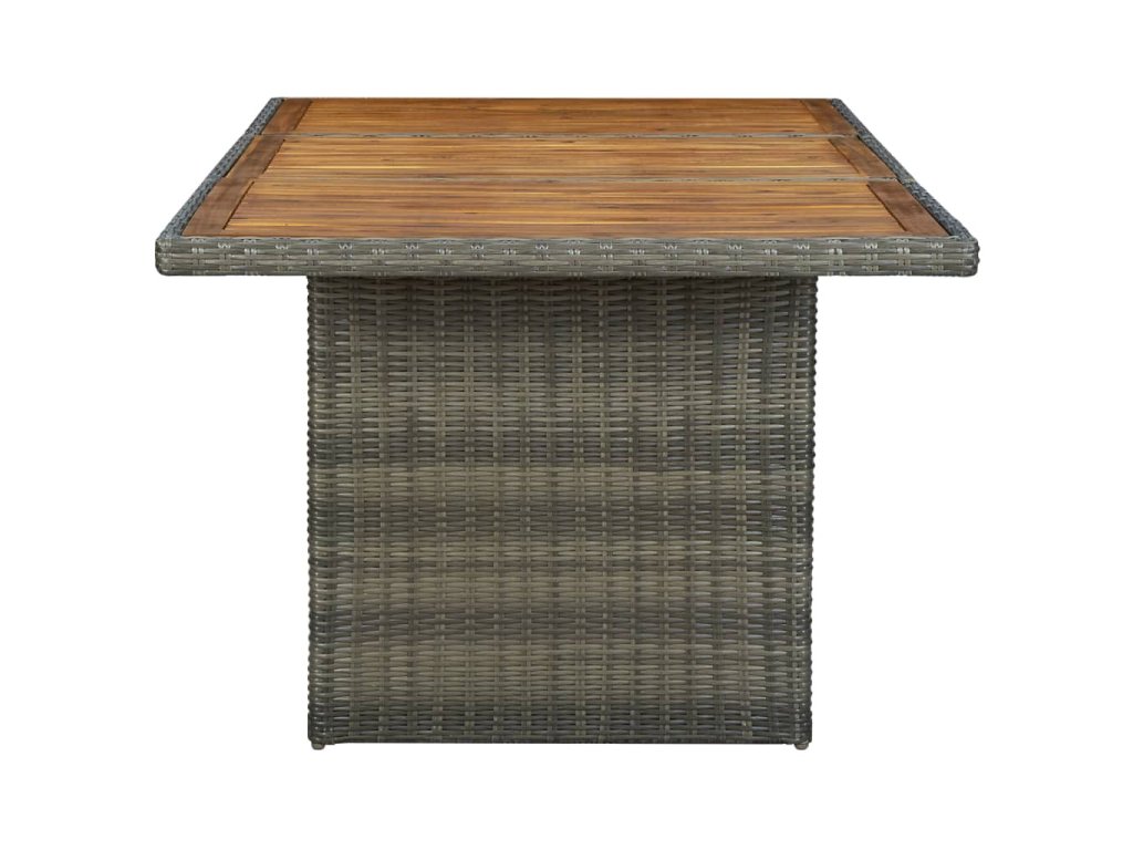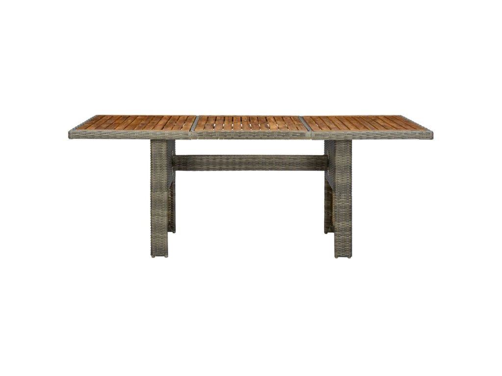 Vonkajší stôl je vyrobený z okrúhleho PE ratanu, vďaka čomu sa ľahko čistí a má dlhú životnosť. Oceľový rám s práškovou povrchovou úpravou a doska stola z akáciového masívu stolu dodávajú potrebnú pevnosť a stabilitu. Robustná stolová doska je ako stvorená na odkladanie či vystavenie rôznych predmetov. Jedálenský stôl má ľahkú konštrukciu, takže sa dá jednoducho premiestniť.