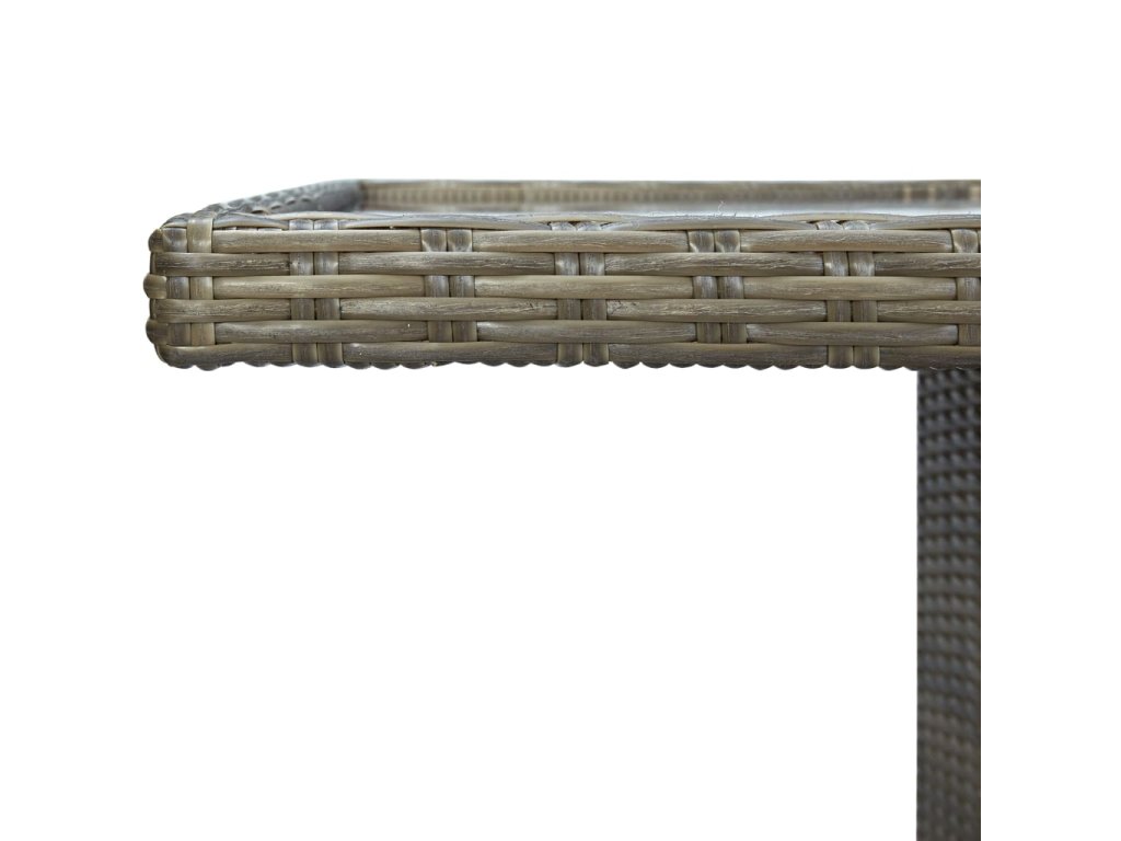 Vonkajší stôl je vyrobený z okrúhleho PE ratanu, vďaka čomu sa ľahko čistí a má dlhú životnosť. Oceľový rám s práškovou povrchovou úpravou a sklenená doska stola stolu dodávajú potrebnú pevnosť a stabilitu. Robustná stolová doska je ako stvorená na odkladanie či vystavenie rôznych predmetov. Jedálenský stôl má ľahkú konštrukciu, takže sa dá jednoducho premiestniť.