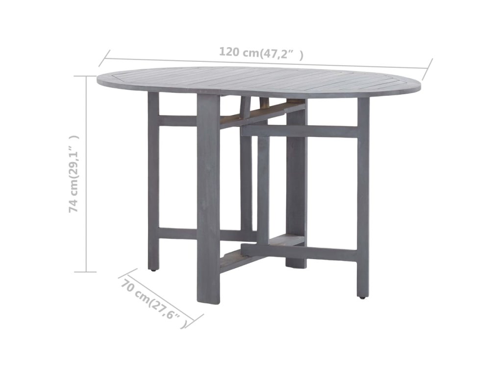 Jedálenský stôl je vyrobený z kvalitného akáciového masívu. Ide o drevo tropického listnatého stromu, ktoré sa vyznačuje svojou odolnosťou voči poveternostným vplyvom a dlhou životnosťou. Povrch stola s olejovým náterom sa dá ľahko očistiť pomocou navlhčenej handričky. Stôl so sklápacími krídlami sa dá poskladať do kompaktných rozmerov, aby nezaberal veľa miesta, keď sa nepoužíva.