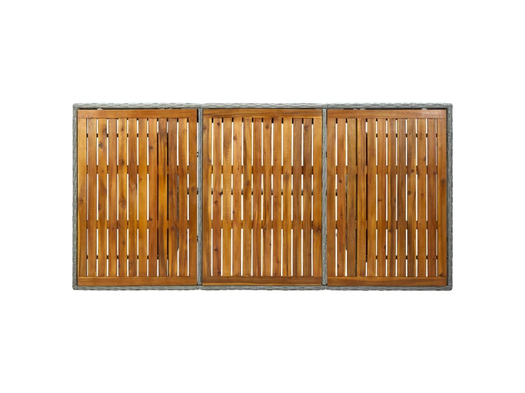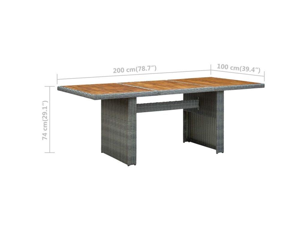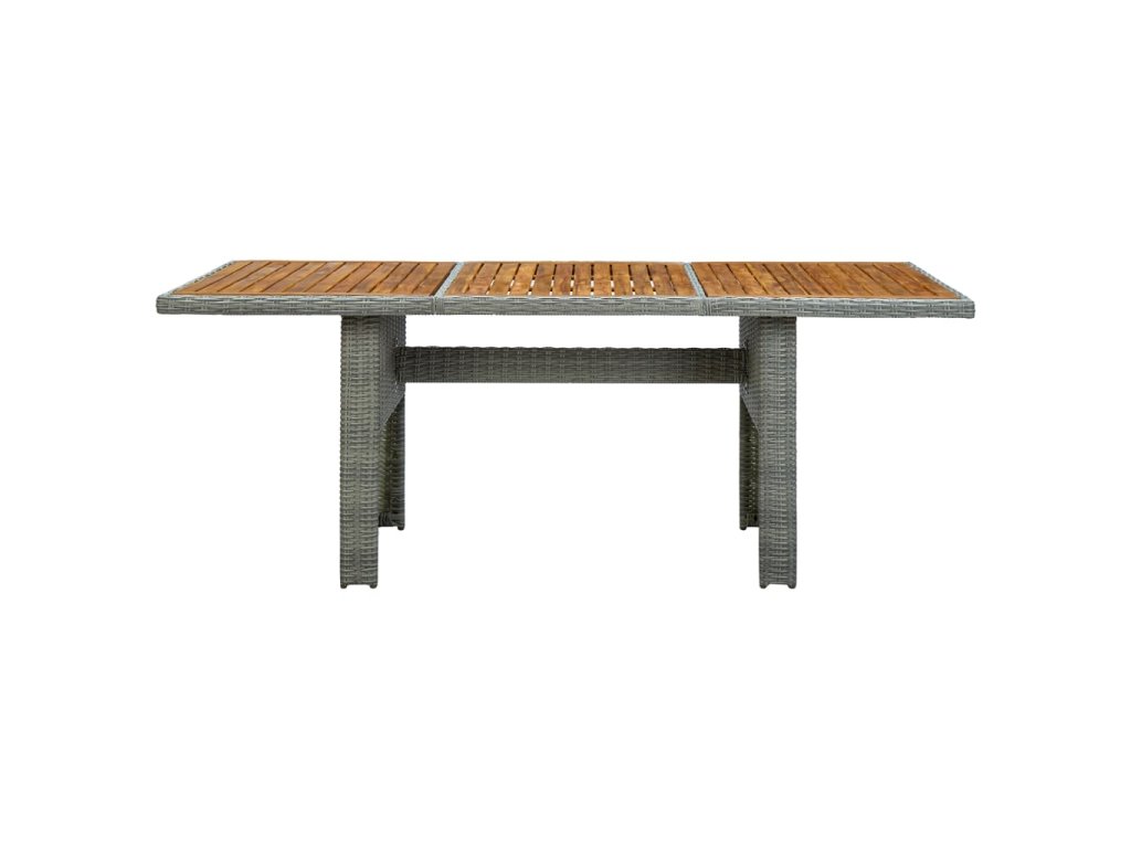 Vonkajší stôl je vyrobený z okrúhleho PE ratanu, vďaka čomu sa ľahko čistí a má dlhú životnosť. Oceľový rám s práškovou povrchovou úpravou a doska stola z akáciového masívu stolu dodávajú potrebnú pevnosť a stabilitu. Robustná stolová doska je ako stvorená na odkladanie či vystavenie rôznych predmetov. Jedálenský stôl má ľahkú konštrukciu, takže sa dá jednoducho premiestniť.