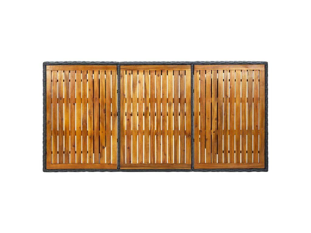 Vonkajší stôl je vyrobený z okrúhleho PE ratanu, vďaka čomu sa ľahko čistí a má dlhú životnosť. Oceľový rám s práškovou povrchovou úpravou a doska stola z akáciového masívu stolu dodávajú potrebnú pevnosť a stabilitu. Robustná stolová doska je ako stvorená na odkladanie či vystavenie rôznych predmetov. Jedálenský stôl má ľahkú konštrukciu, takže sa dá jednoducho premiestniť.