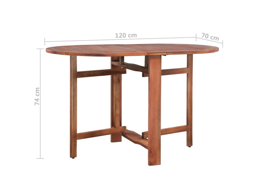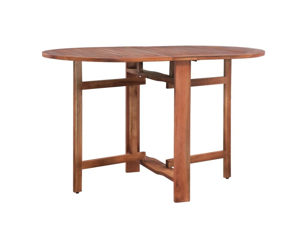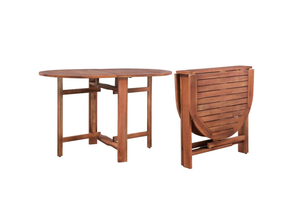 Jedálenský stôl je vyrobený z akáciového masívu prvotriednej kvality. Ide o drevo tropického listnatého stromu, ktoré sa vyznačuje svojou odolnosťou voči poveternostným vplyvom a dlhou životnosťou. Povrch stola s olejovým náterom sa dá ľahko očistiť pomocou navlhčenej handričky. Stôl so sklápacími krídlami sa dá poskladať do kompaktných rozmerov, aby nezaberal veľa miesta, keď sa nepoužíva.