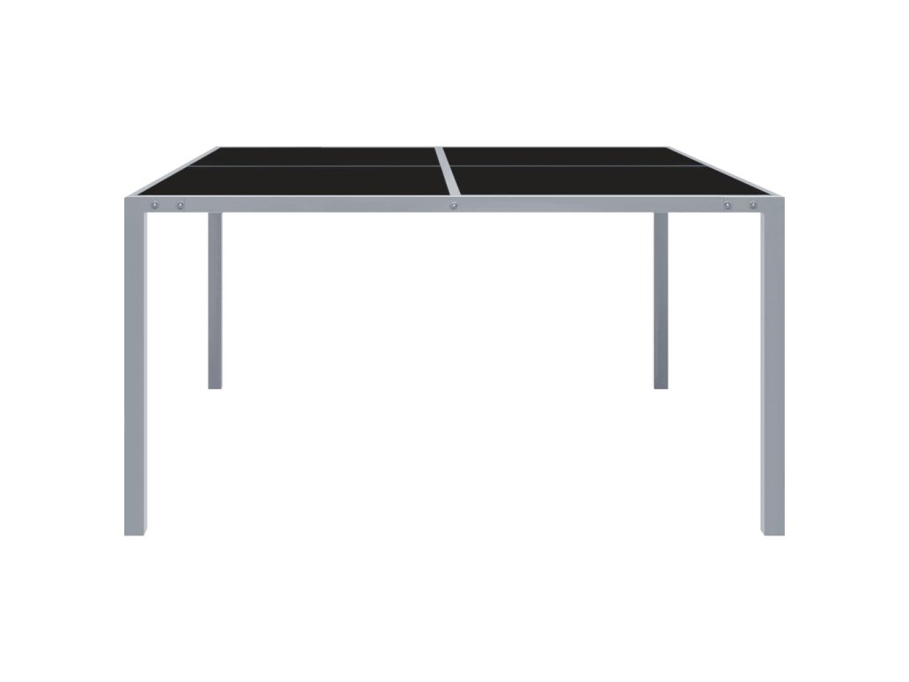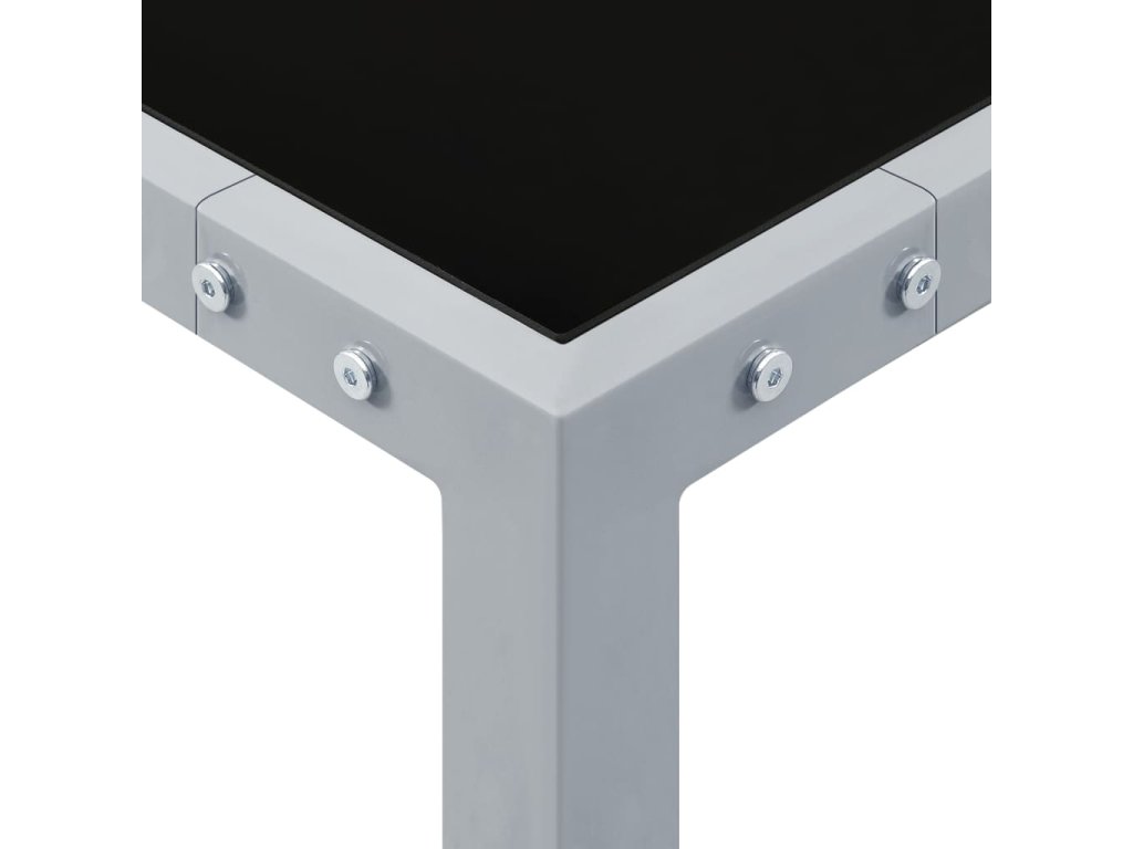 Tento vonkajší stôl je vyrobený z ocele s práškovou povrchovou úpravou,vďaka čomu je trvácny a pevný. Veľká stolová doska je vyrobená z tvrdeného skla, vďaka čomu sa jednoducho udržiava. Okrem toho sa dá jednoducho čistiť.
