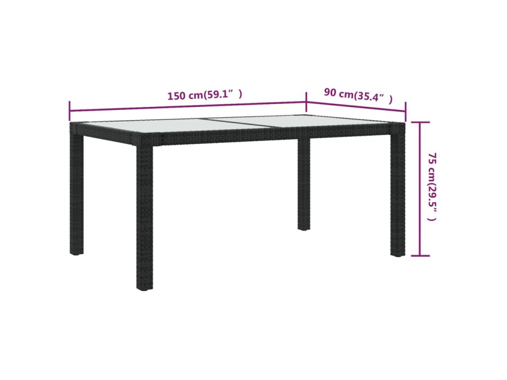 - Materiál: Polyratan, oceľ potiahnutá práškom, tvrdené sklo