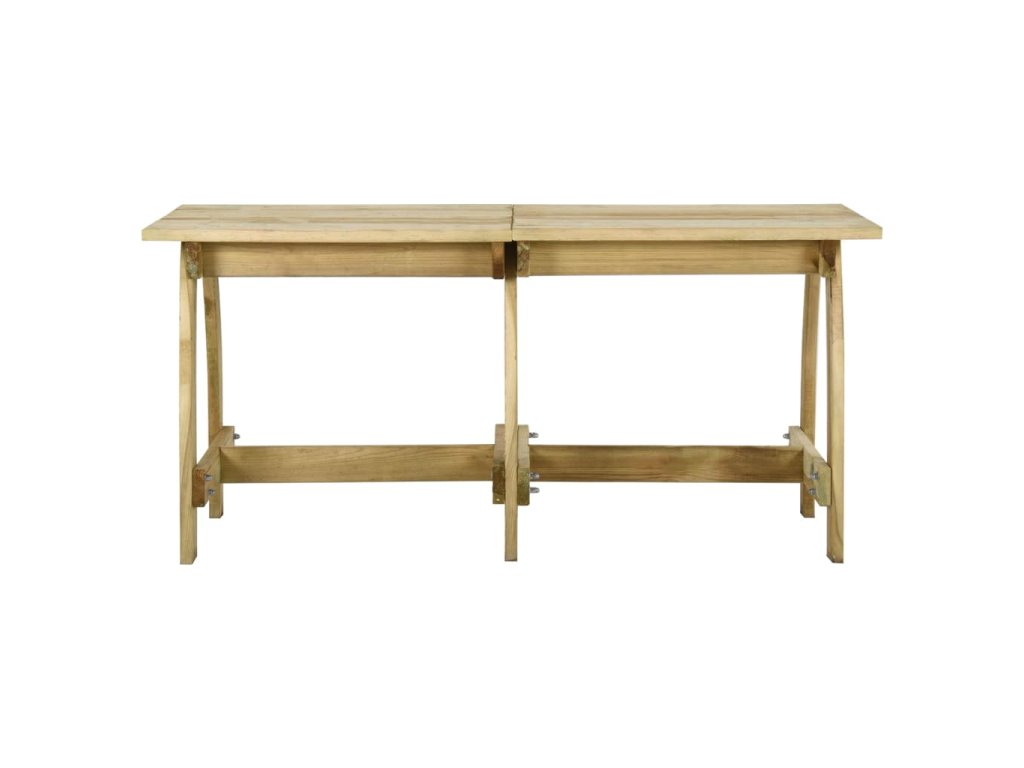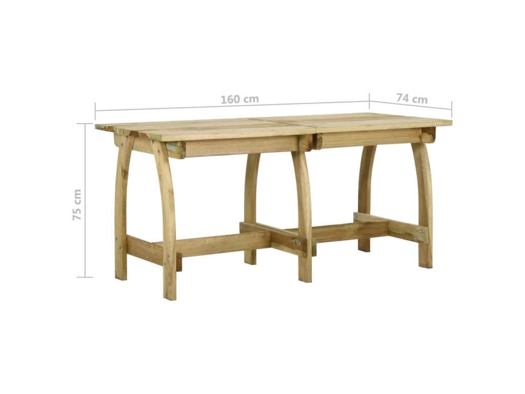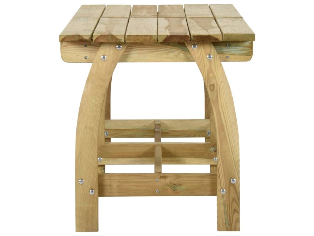 Tento drevený vonkajší stôl vyrobený zo zeleného impregnovaného borovicového dreva je veľmi pevný, trvácny a odolný voči korózii. Stôl je ideálnou voľbou pre chvíle oddychu v romantickej záhrade vidieckeho domu alebo pri idylickom záhradnom jazierku na večeru s rodinou a priateľmi. Upozorňujeme, že drevo je prírodný produkt a môže vykazovať nedokonalosti.