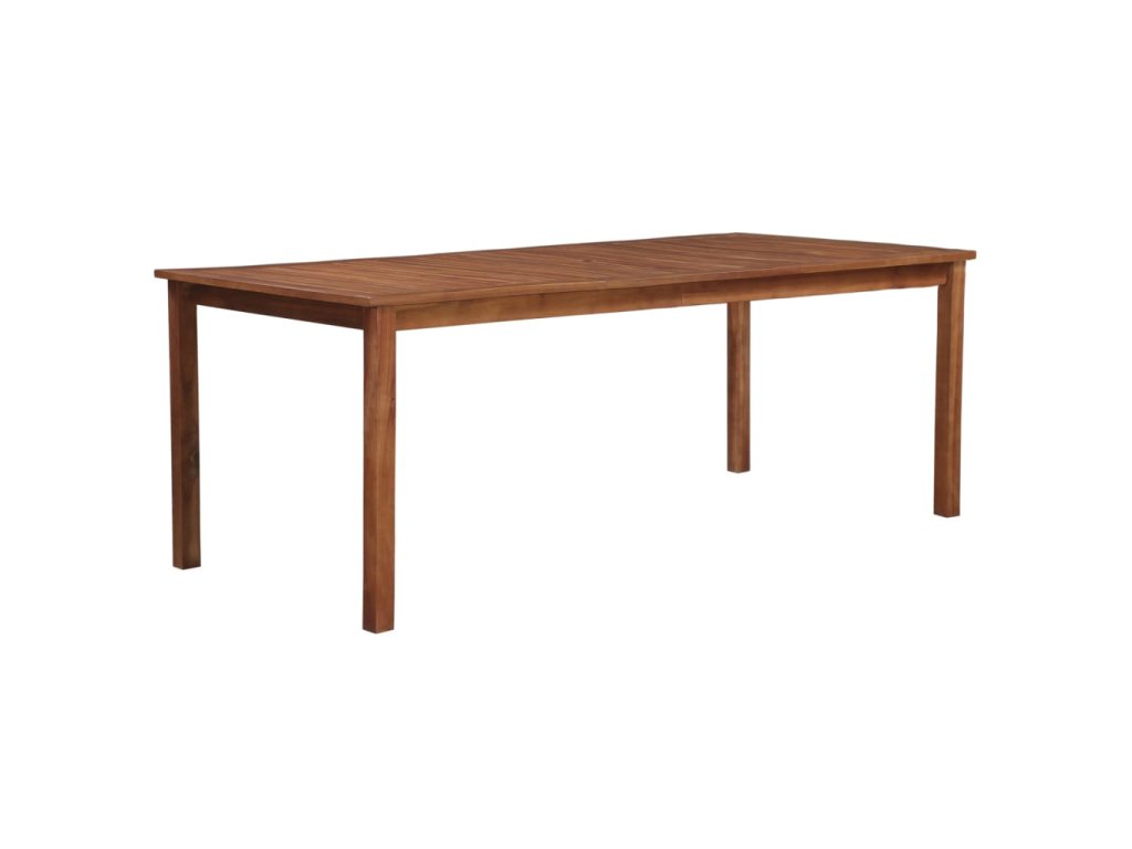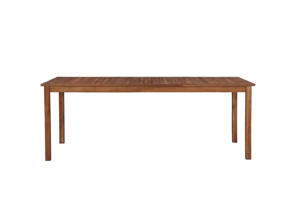 Záhradný stôl je vyrobený z akáciového masívu s olejovým náterom, vďaka čomu je pevný, trvácny a nevyžaduje si náročnú údržbu. Má nadčasový dizajn, ktorý sa bude hodiť takmer do každej záhrady. Jedálenský stôl sa jednoducho montuje.