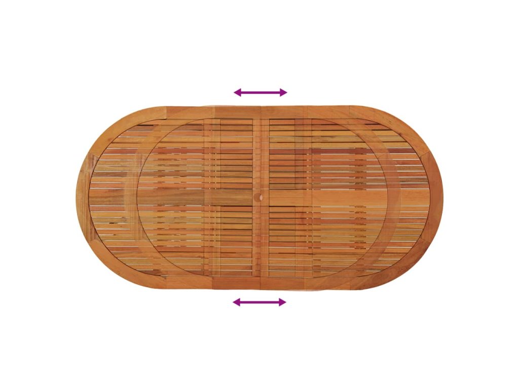 - Rozšíriteľný dizajn: Drevený záhradný stôl je rozťahovací. Ak budete v prípade potreby potrebovať väčšiu plochu, stolová doska sa dá zväčšiť.