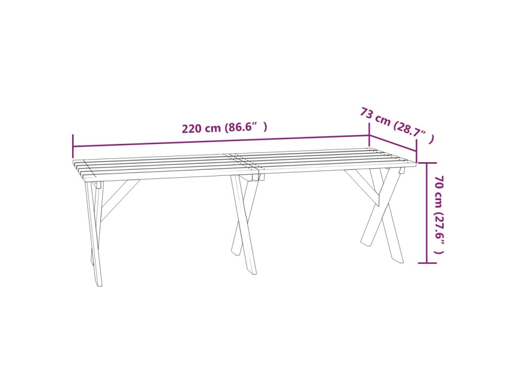 Je vyrobený z impregnovaného borovicového dreva, vďaka čomu je trvácny a odolný voči korózii. Záhradný jedálenský stôl je preto vhodný na vonkajšie použitie. Za týmto stolom si užijete svoj voľný čas naozaj skvele!