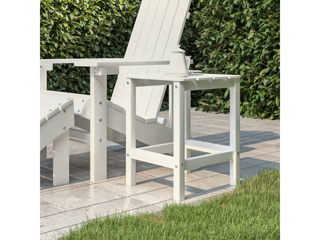 Terasový stôl je vyrobený z HDPE (polyetylén s vysokou hustotou), ktorý je odolný voči poveternostným vplyvom a UV žiareniu. Tento materiál dokonale vylepšuje nedostatky masívneho dreva, ktoré najmä v daždivých dňoch rýchlo chátra a praská. Záhradný stolík nevyžaduje žiadne natieranie, morenie, hydroizoláciu ani podobnú údržbu. Potrebné je iba umývanie mydlom, vodou a kefkou s mäkkými štetinami. Tento odolný stôl vám zabezpečí dlhé roky používania s minimálnou starostlivosťou. Pevná stolová doska vám naň umožní umiestniť telefón, slnečné okuliare, pitie a iné drobnosti.