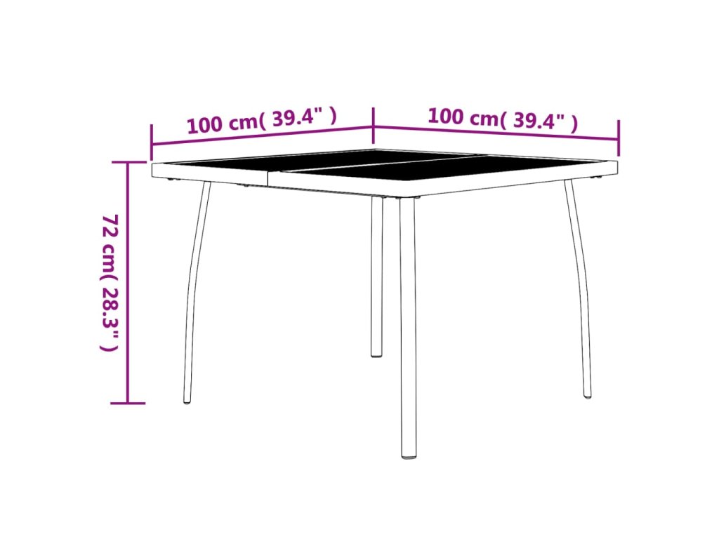 - Stabilný rám: Elektroforetické lakovanie a práškovaná povrchová úprava na oceli zaisťuje odolnosť a stabilitu tohto vonkajšieho stola.