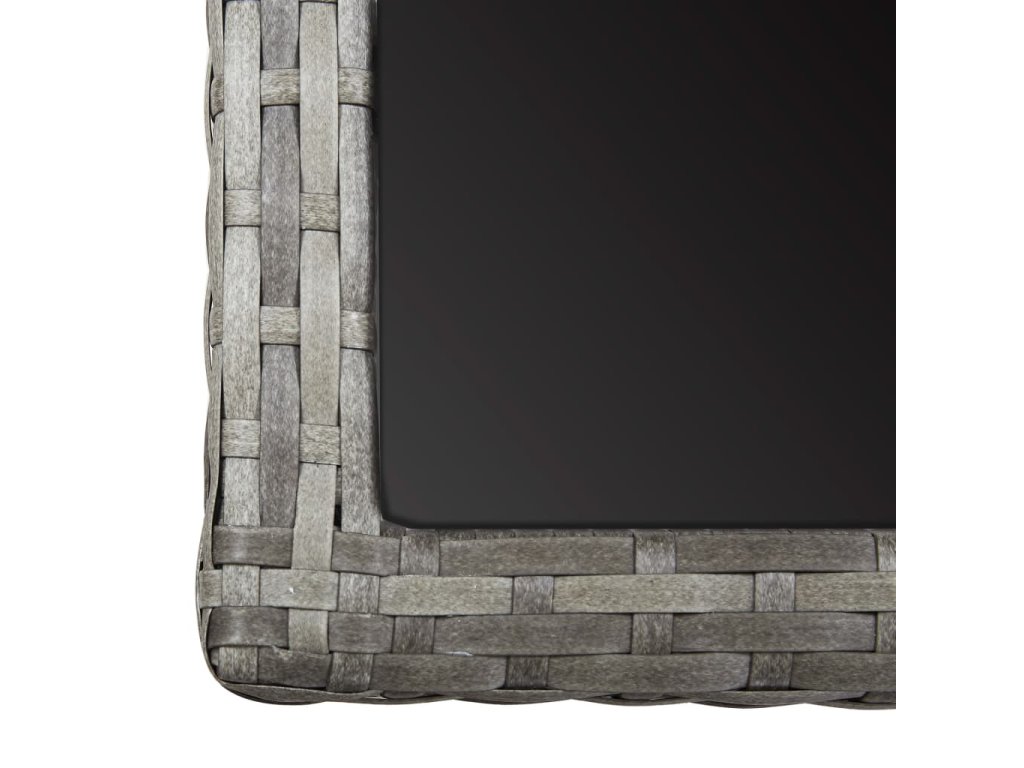 - Materiál: Polyratan + oceľový rám s práškovou povrchovou úpravou + sklenená doska