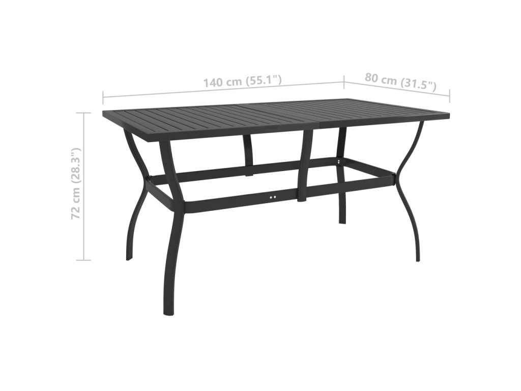 Tento vonkajší stôl je vyrobený z ocele s práškovaným povrchom, vďaka čomu je robustný a stabilný.