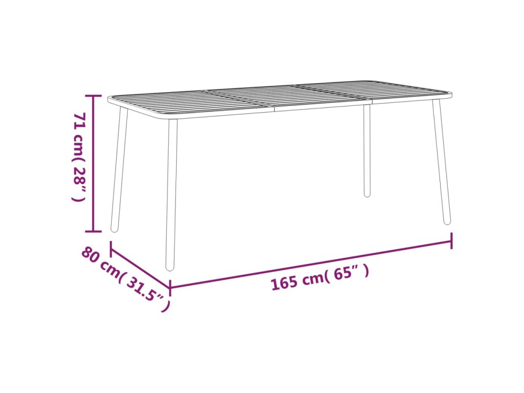 - Stabilný rám: Elektroforetické lakovanie a práškovaná povrchová úprava na oceli zaisťuje odolnosť a stabilitu tohto vonkajšieho stola.
