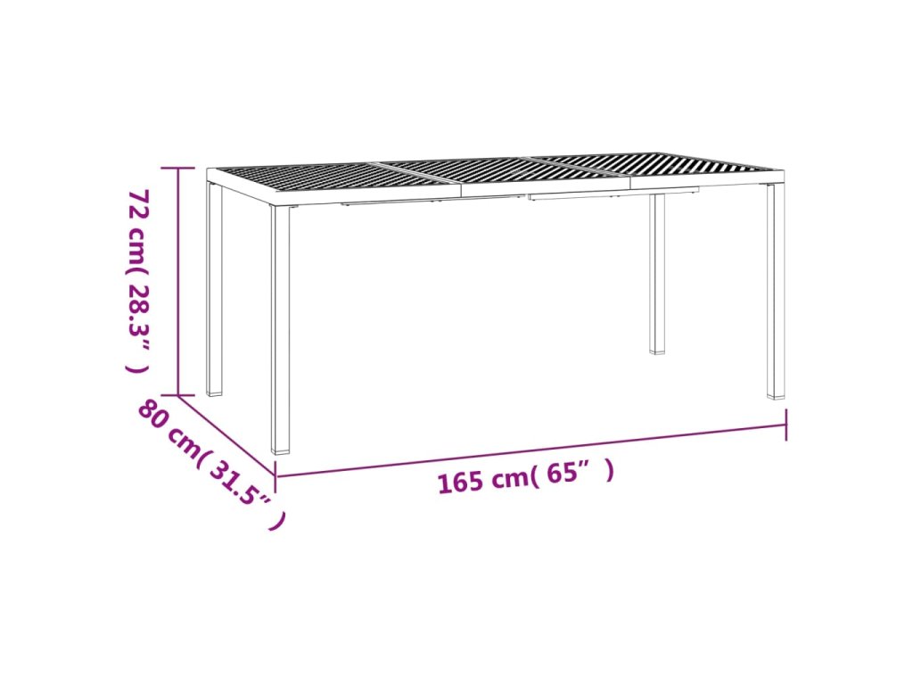 - Stabilný rám: Elektroforetické lakovanie a práškovaná povrchová úprava na oceli zaisťuje odolnosť a stabilitu tohto vonkajšieho stola.