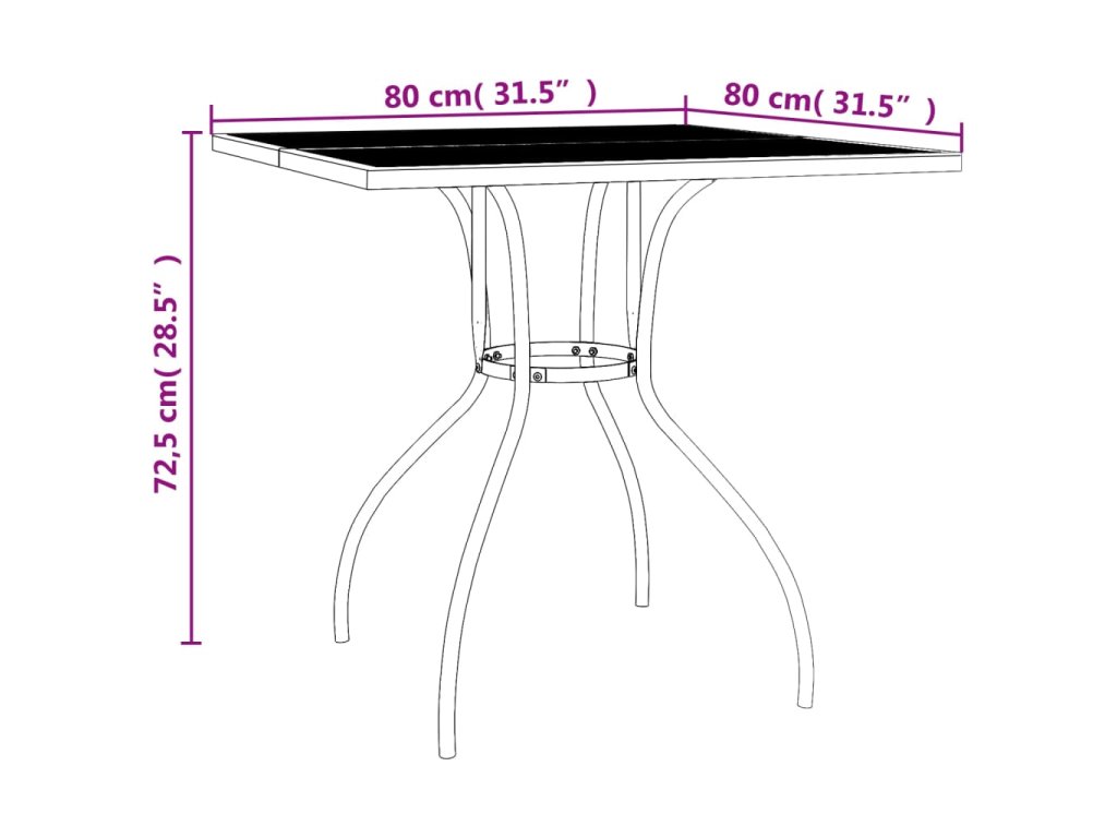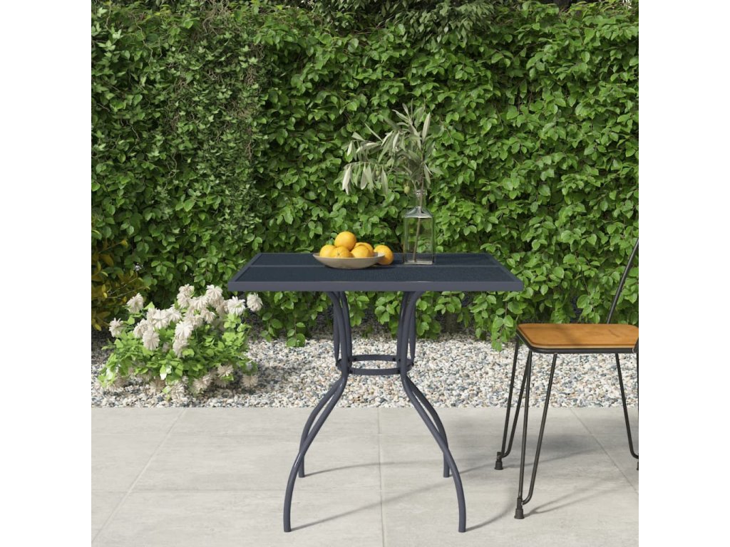- Stabilný rám: Elektroforetické lakovanie a práškovaná povrchová úprava na oceli zaisťuje odolnosť a stabilitu tohto vonkajšieho stola.