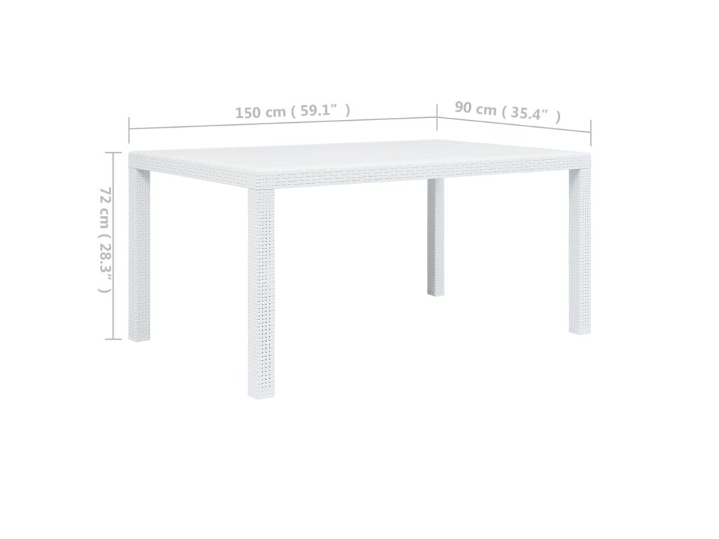 Jedálenský stôl s ratanovým vzhľadom je vyrobený z pevného plastu, vďaka čomu je trvácny, silný, odolný voči vplyvom počasia a ľahko čistiteľný. Jeho ratanový vzhľad dodá do vášho vonkajšieho priestoru prírodný nádych. Záhradný stôl je tiež ľahký a jednoducho sa premiestňuje.