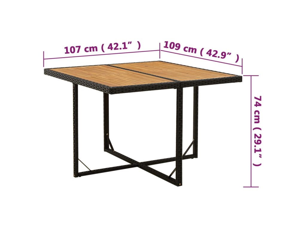 Vďaka PE ratanu odolnému voči poveternostným vplyvom sa tento vonkajší stôl ľahko čistí a má dlhú životnosť. Stôl je pevný a stabilný vďaka oceľovému rámu s práškovým nástrekom a drevenej doske stola. Stolová doska je ideálna na umiestnenie alebo vystavenie rôznych potrebných vecí. Okrem toho sa tento vonkajší jedálenský stôl vďaka ľahkej konštrukcii ľahko presúva.